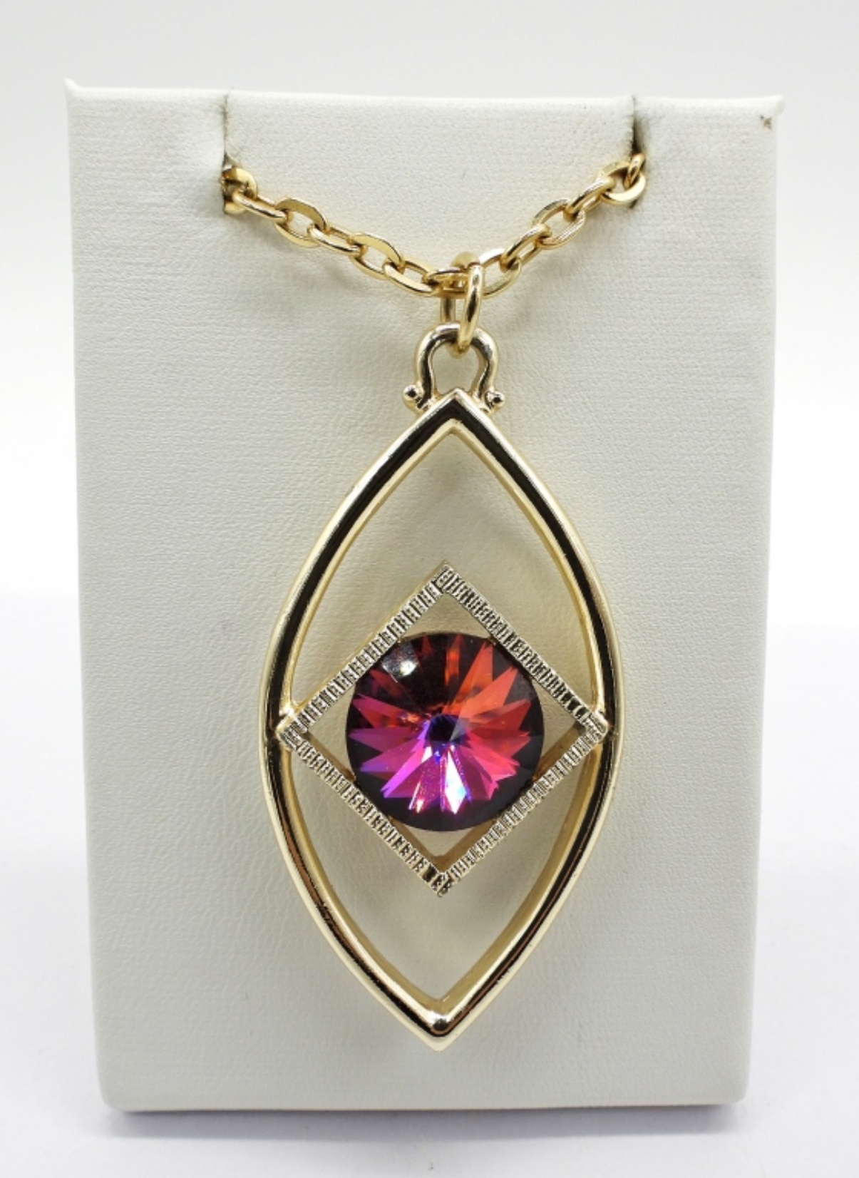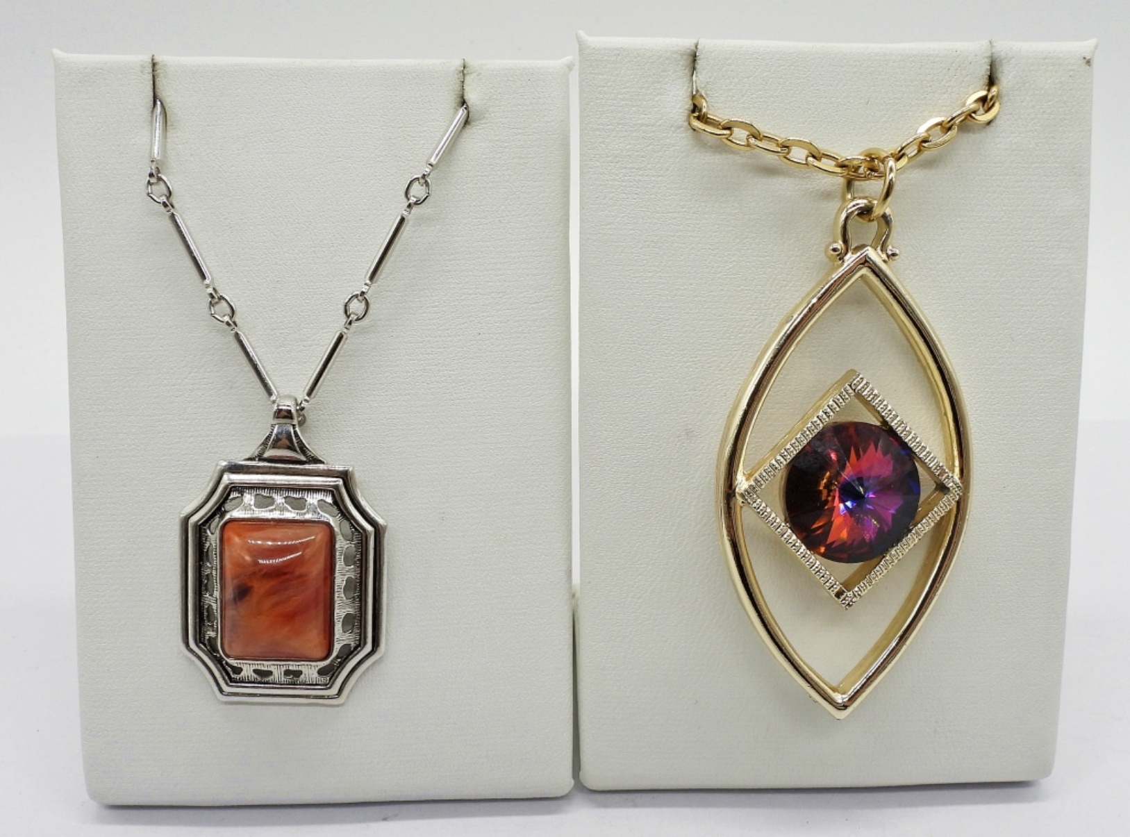 Two Sarah Coventry Brand Necklaces, 24″ with Gemstones. One Gold Tone and One Silver Tone.