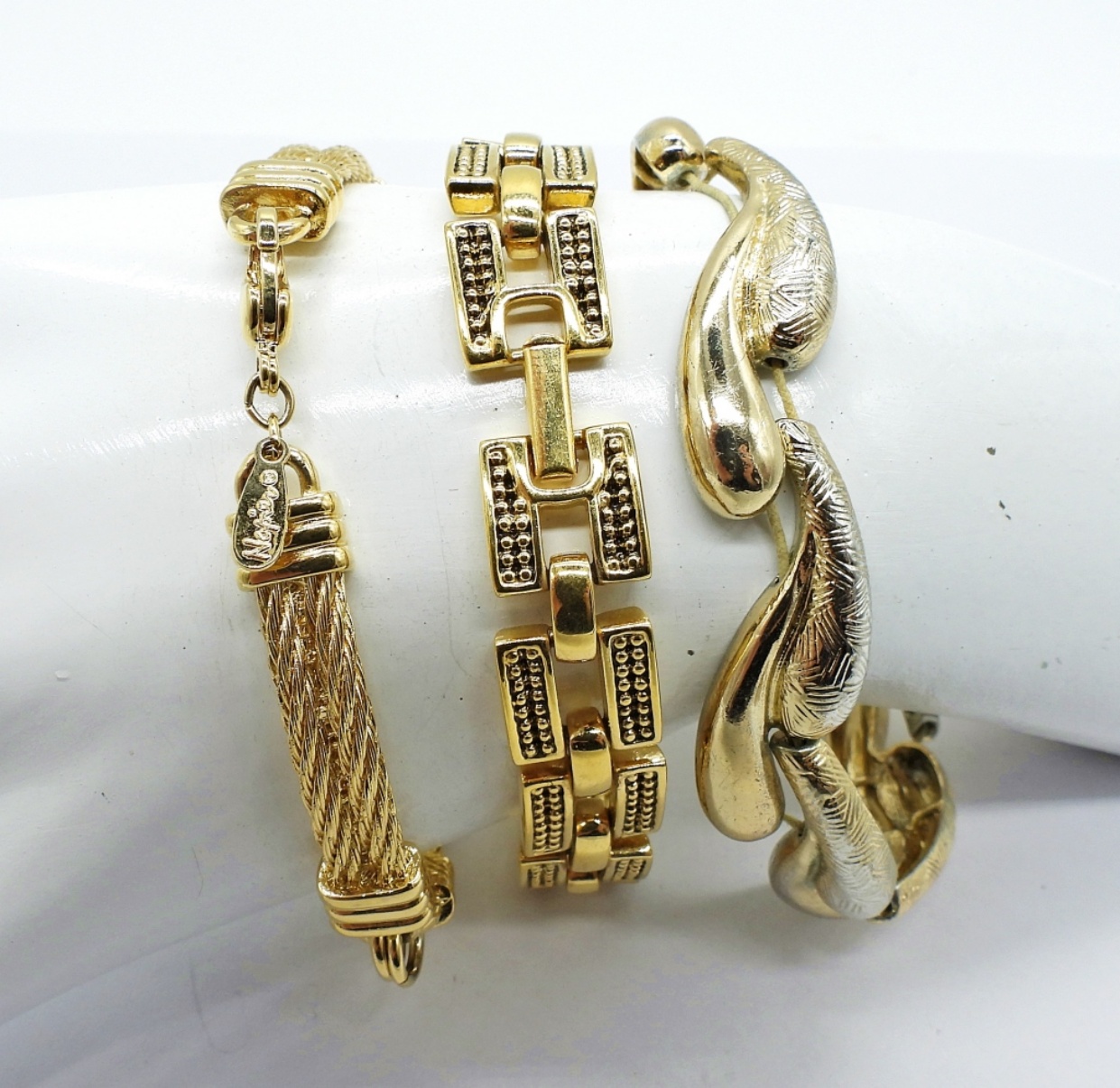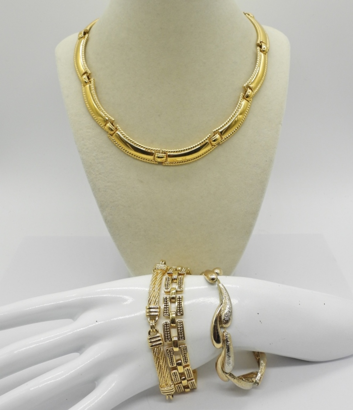 Four Piece Gold Tone NAPIER Jewelry. Bracelets are 7″, Necklace 17″.