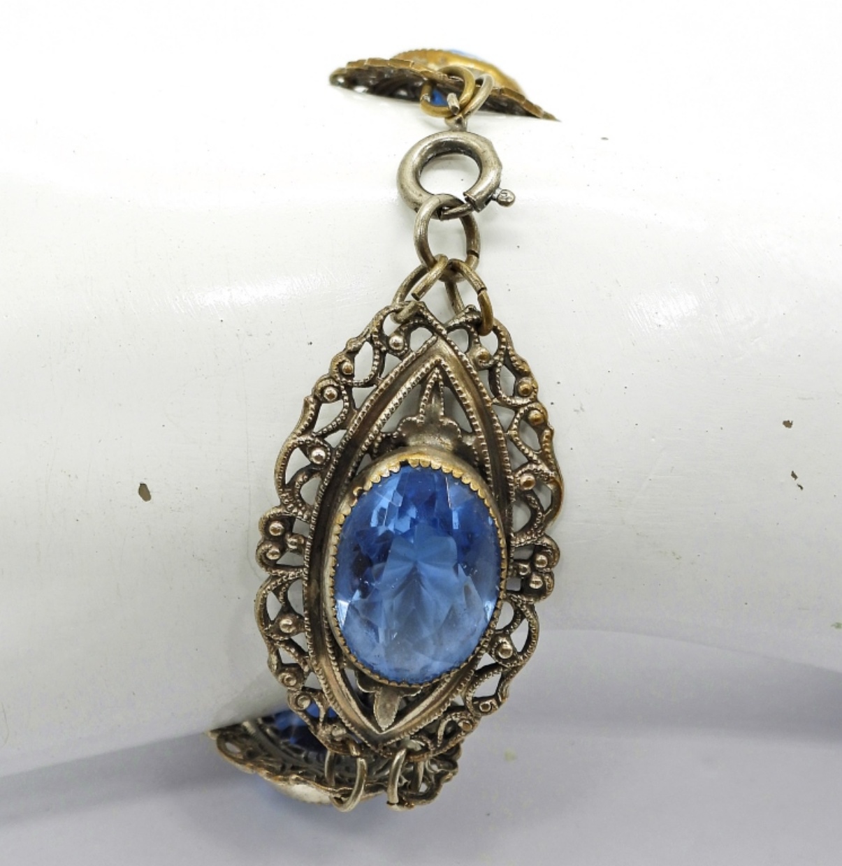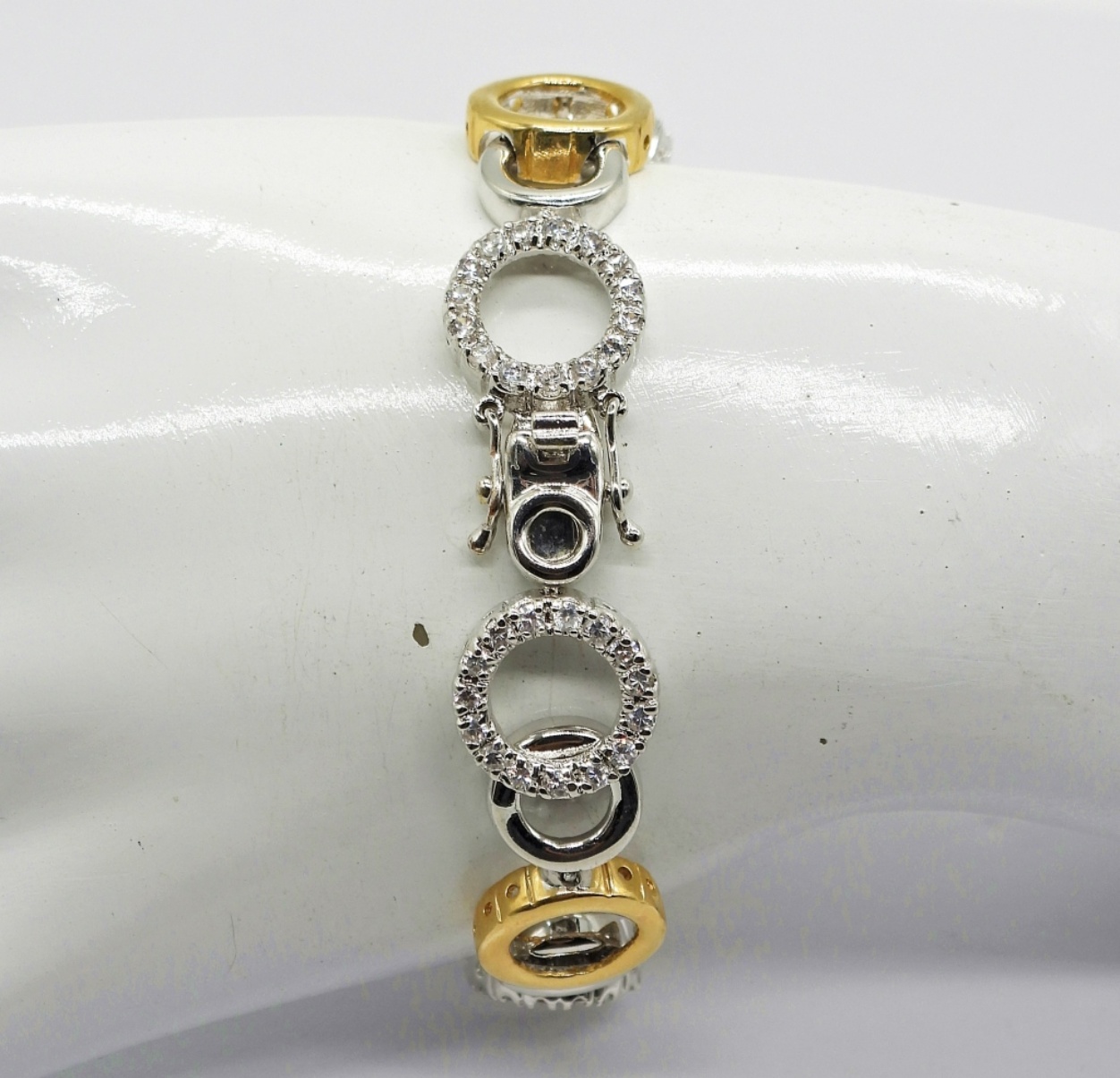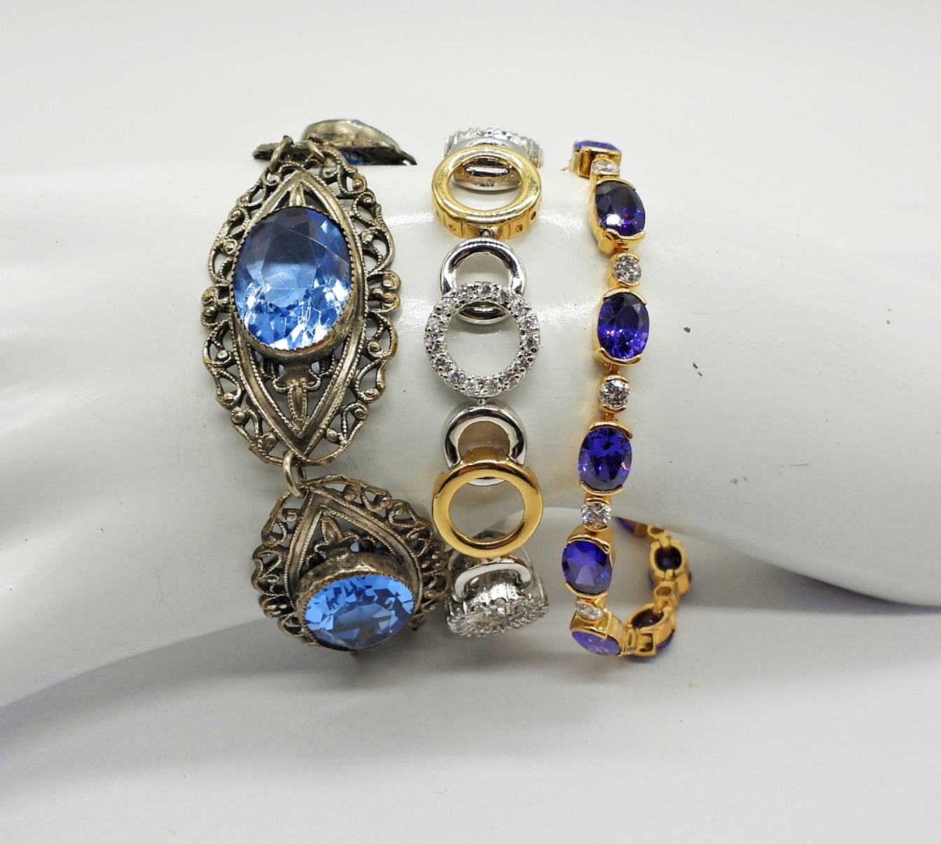 Three Gemstone, Silver and Gold Tone Bracelets. 7″.