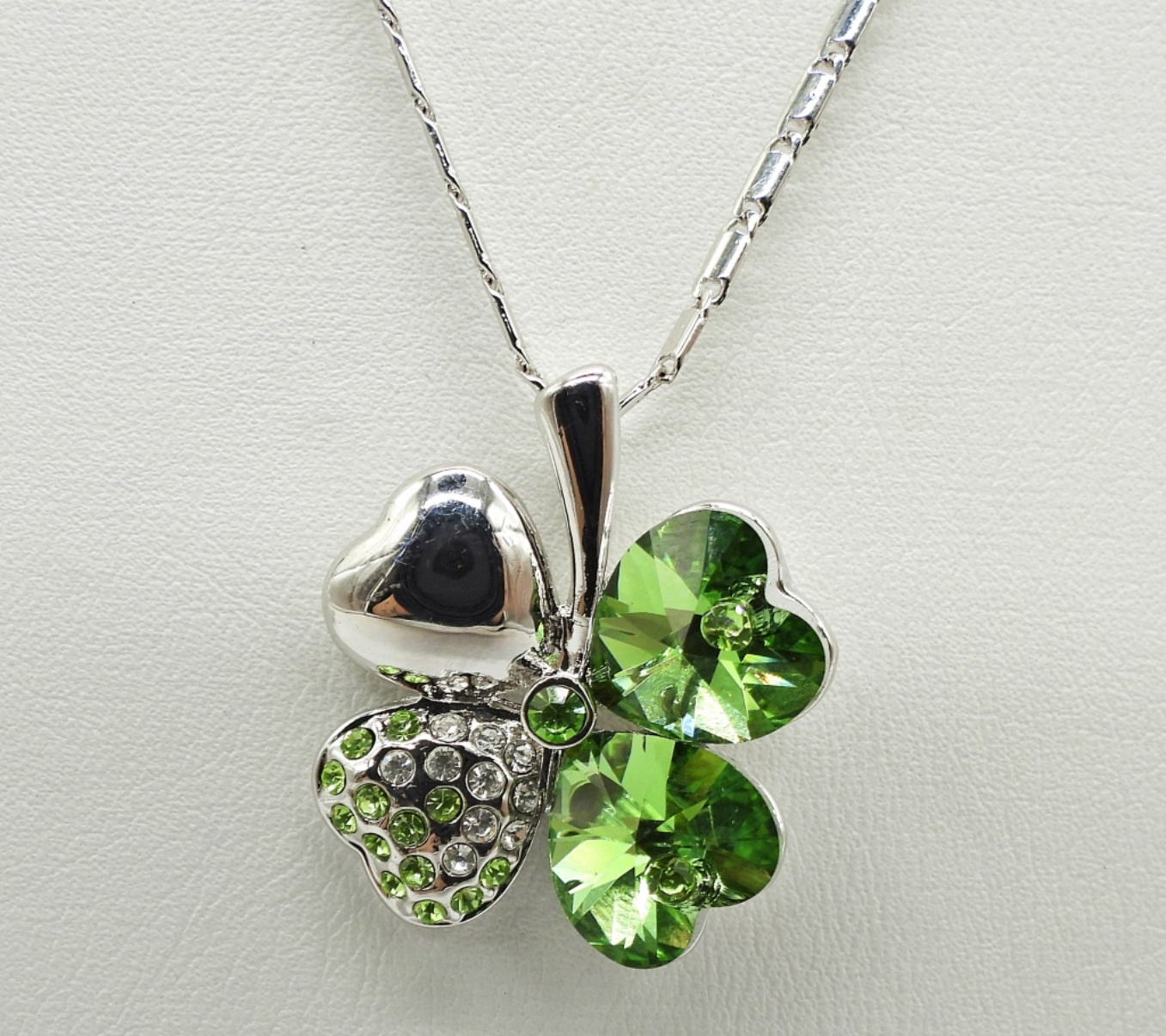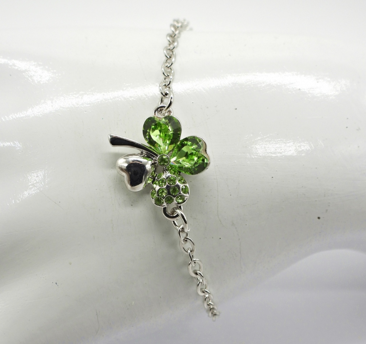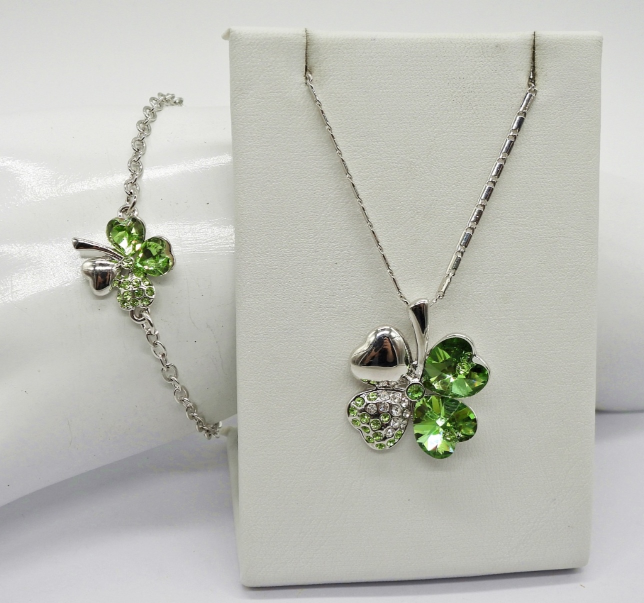 Silver Tone Necklace and Bracelet Set, Green Crystals with Green Rhinestones. Necklace is 18″, Bracelet is adjustable 6.5″-8″.