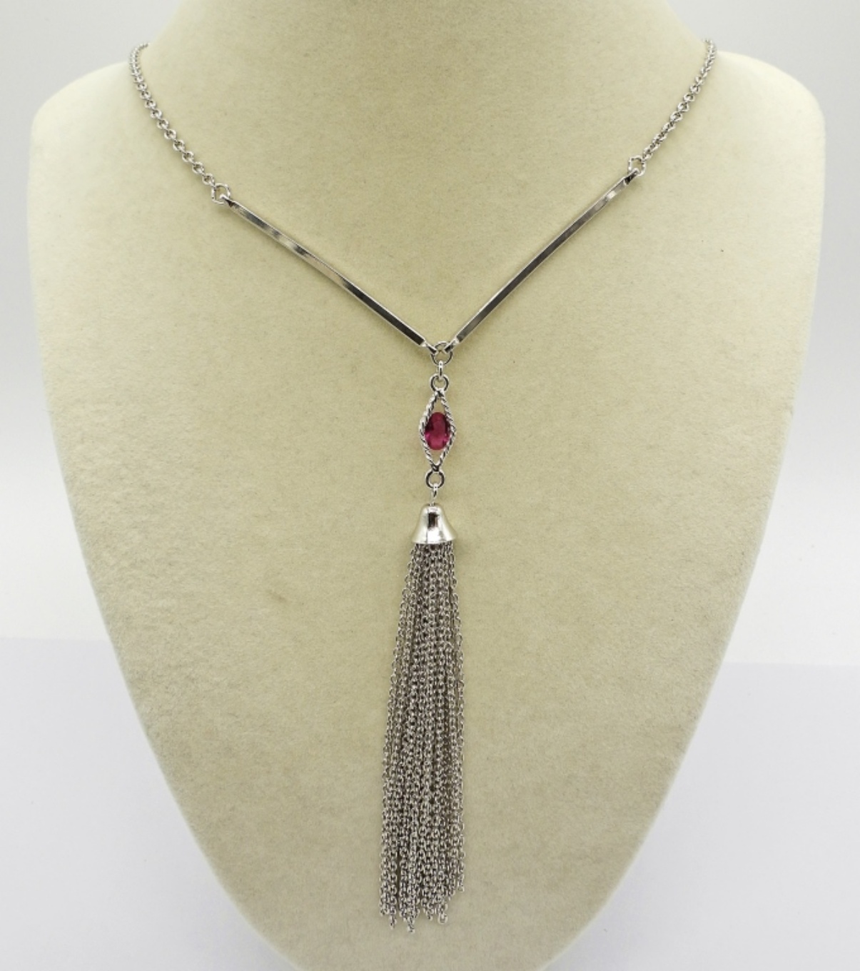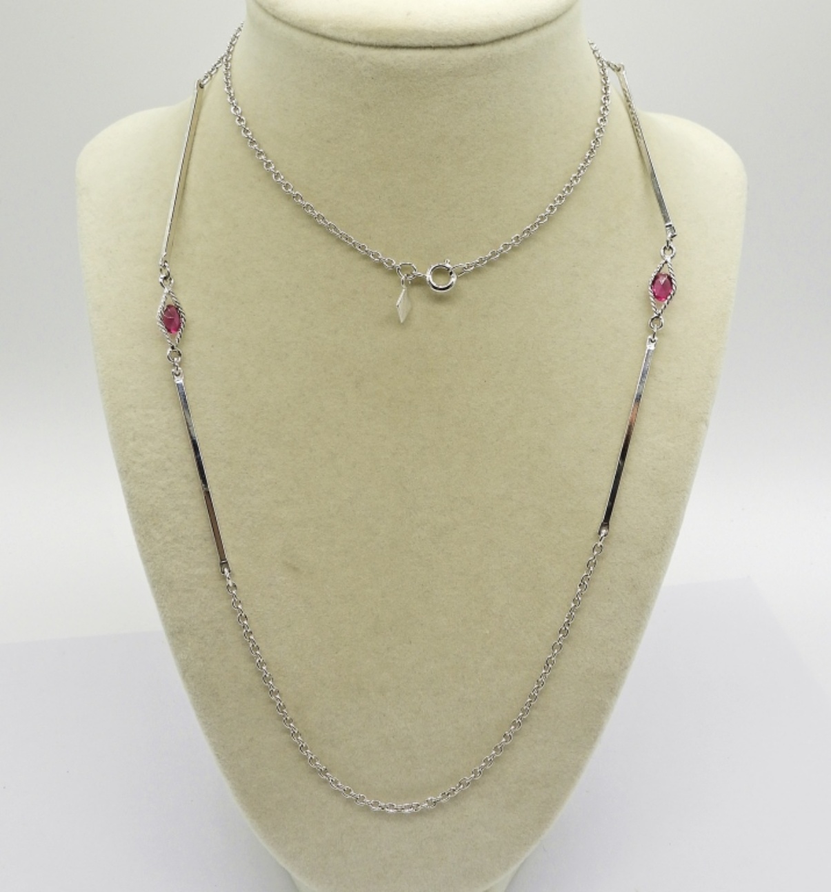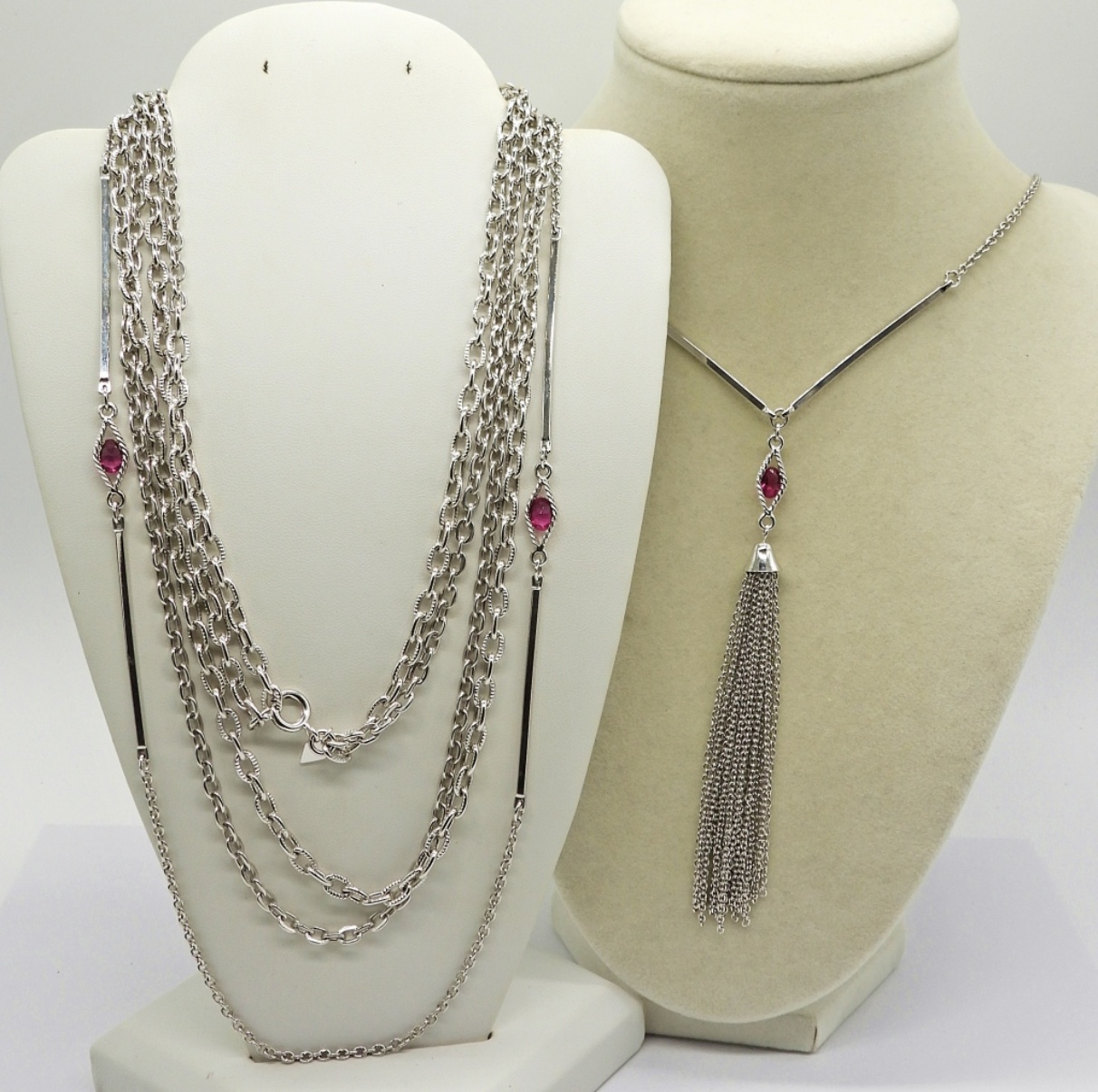 Three Sarah Coventry Silver Tone Necklaces, Two with Gemstones. Lengths are 33″, 20″, 32″.