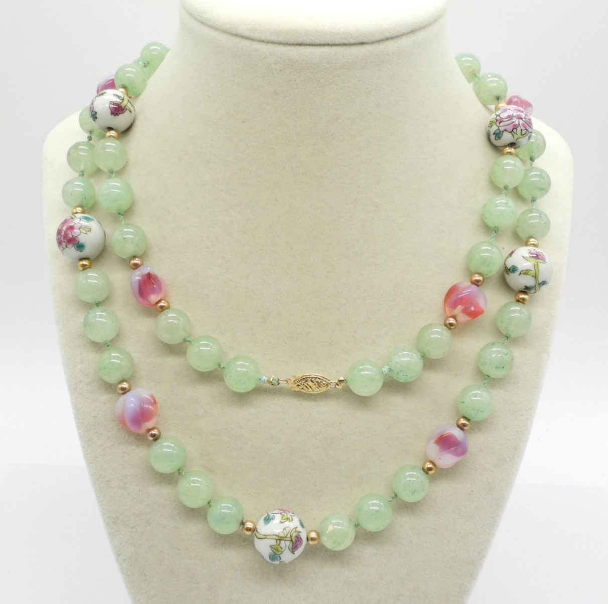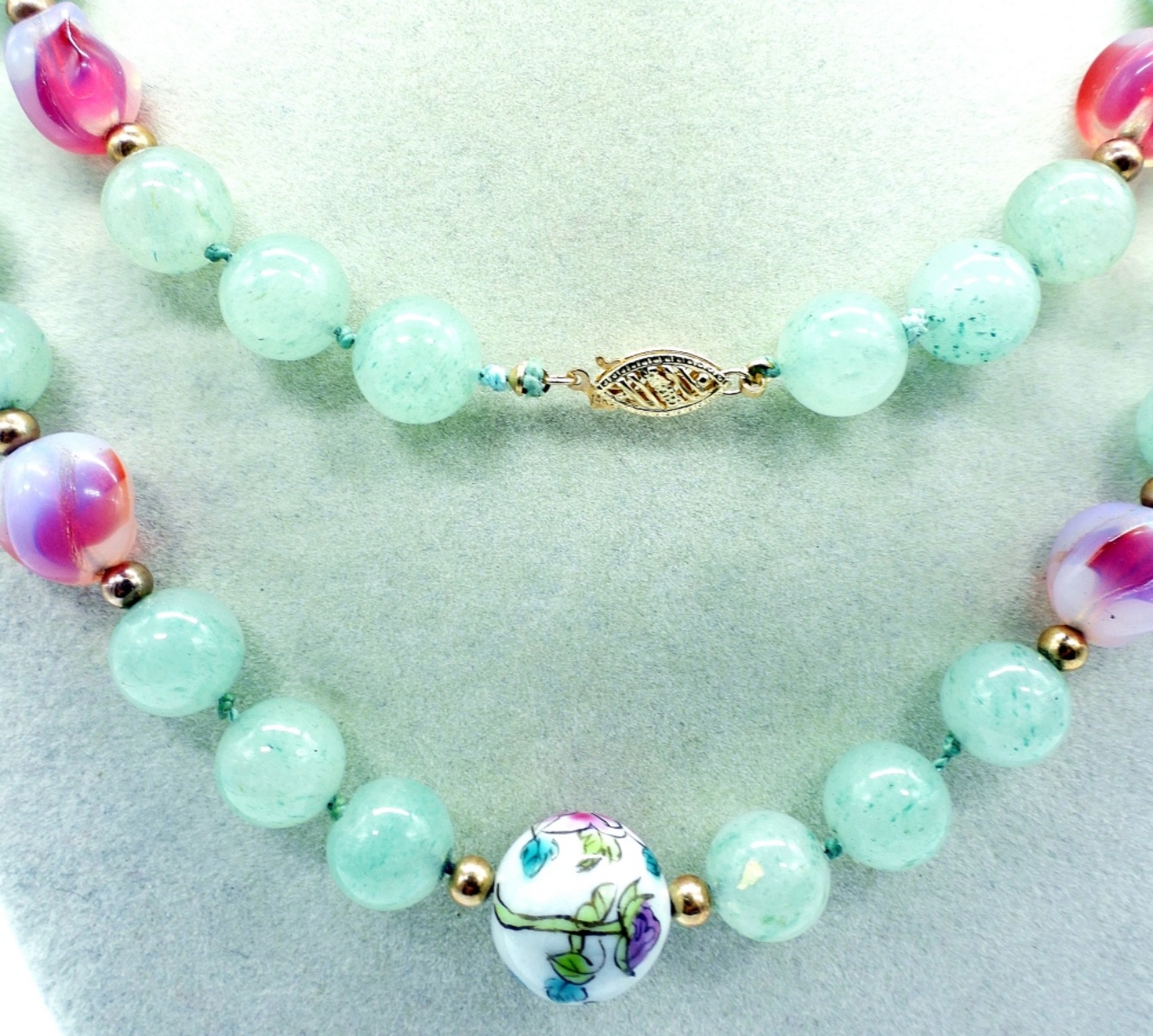 35″ Strand of Jade & Cloisonne Beads. Very Beautiful Piece!