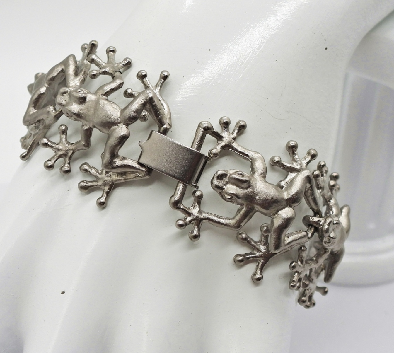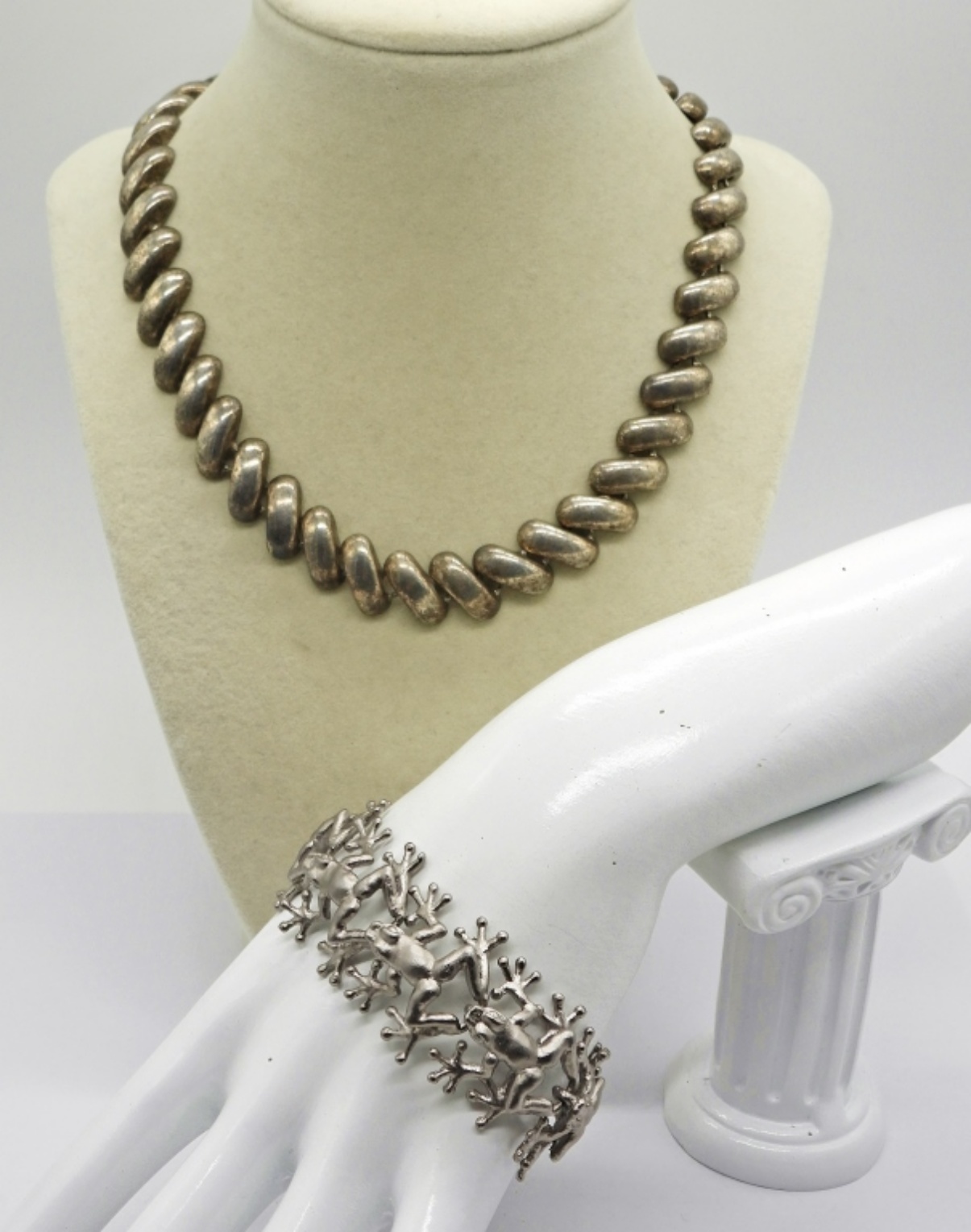 Vintage Silver Tone Frog 8″ Bracelet, Very Unique. Vintage Silver Tone 17″ Necklace.