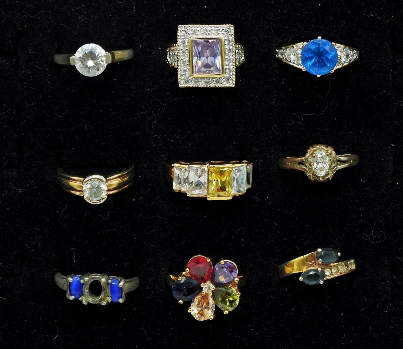 Gold and Silver Tone Gemstone Fashion Rings Sizes 7, 8(most of them), 9.