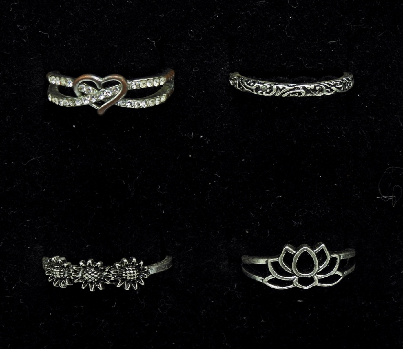 Four Silver Tone Petite Bands. Sizes 4.5, 5, 7.5