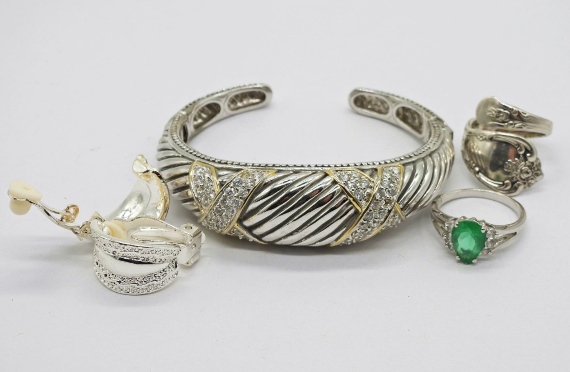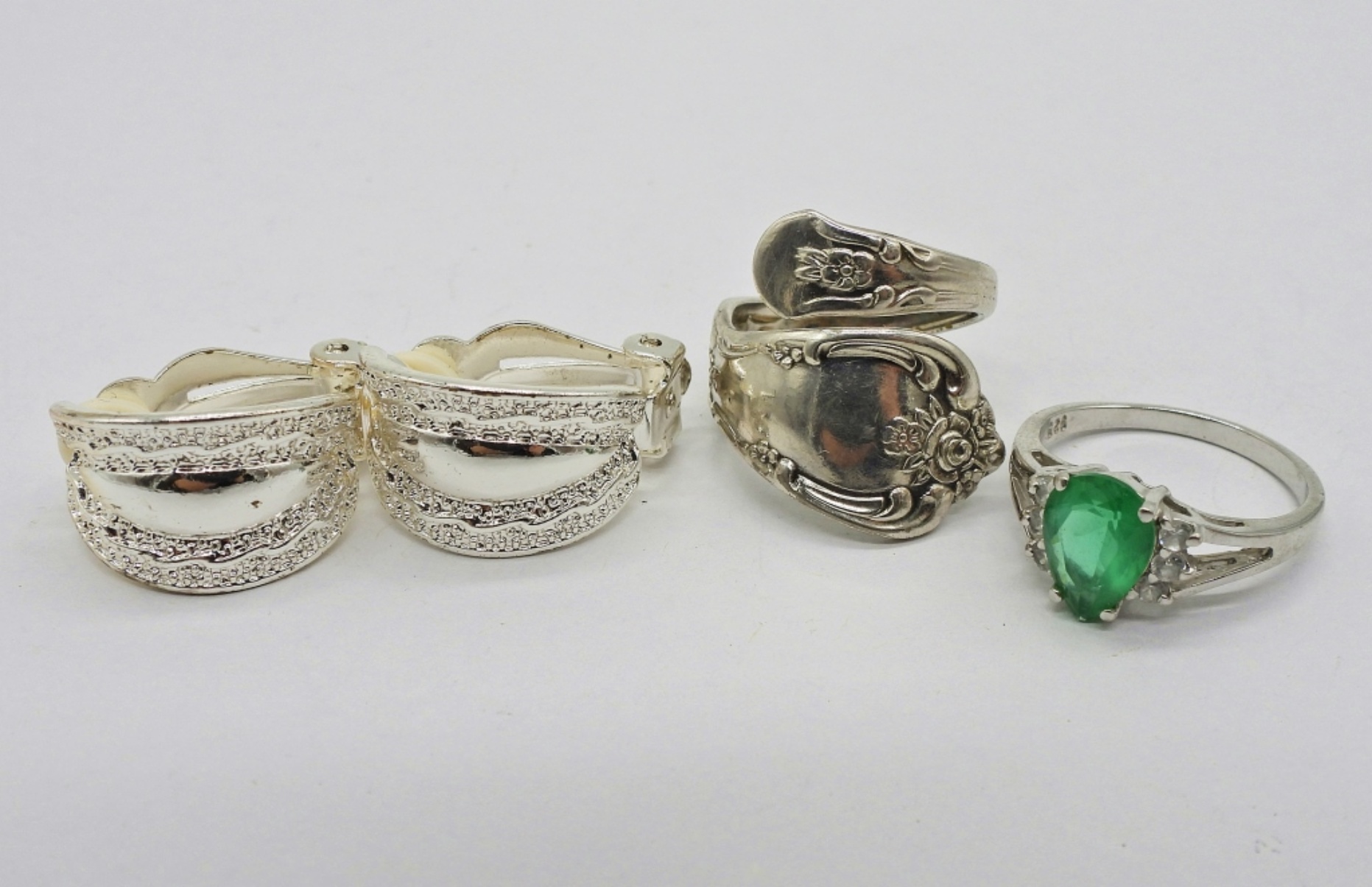 Bracelet is 6″, Rings are 7 & 7.5. Earrings are Clip Ons.