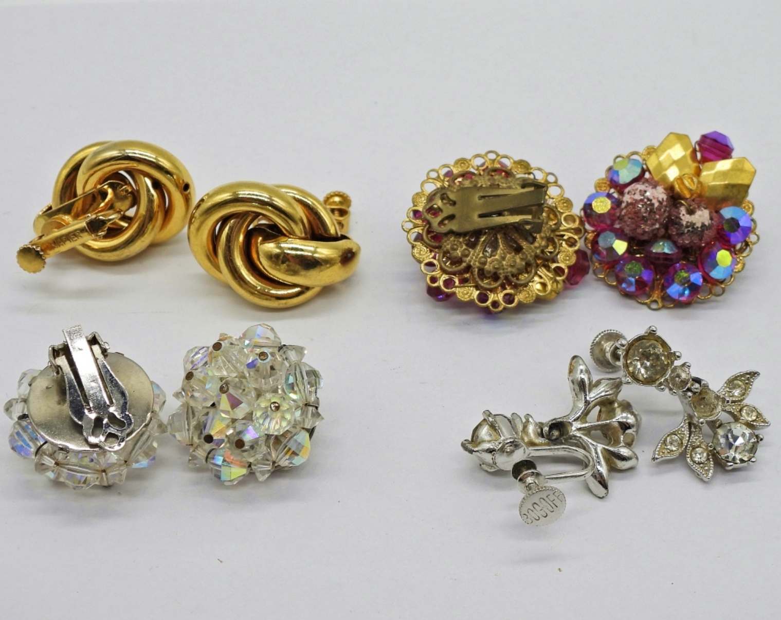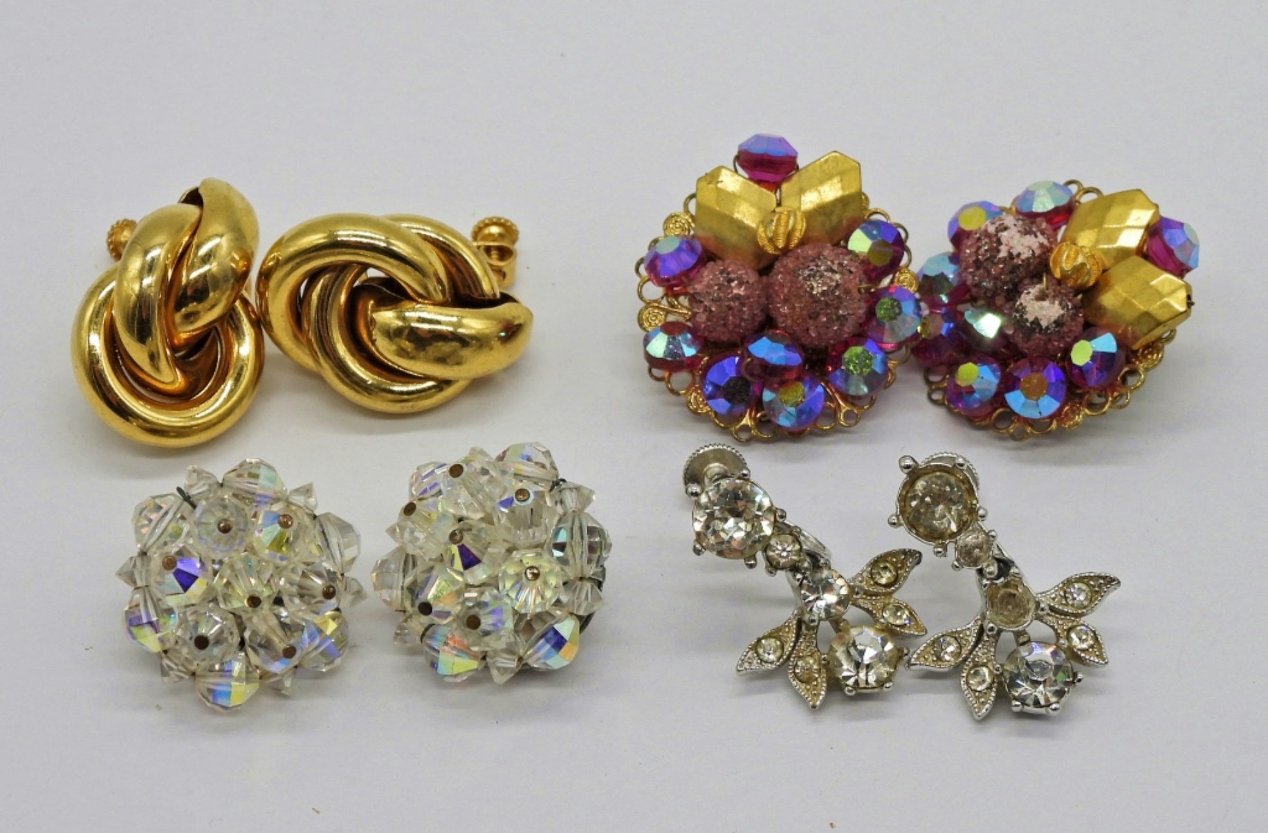 Four Pair of Silver and Gold Tone Vintage Earrings, Clip On and Screw Back.