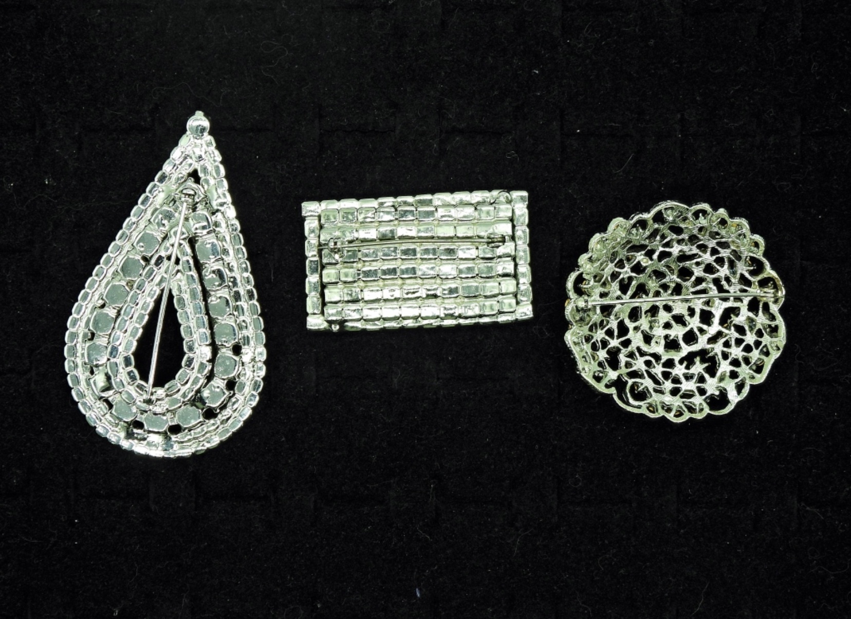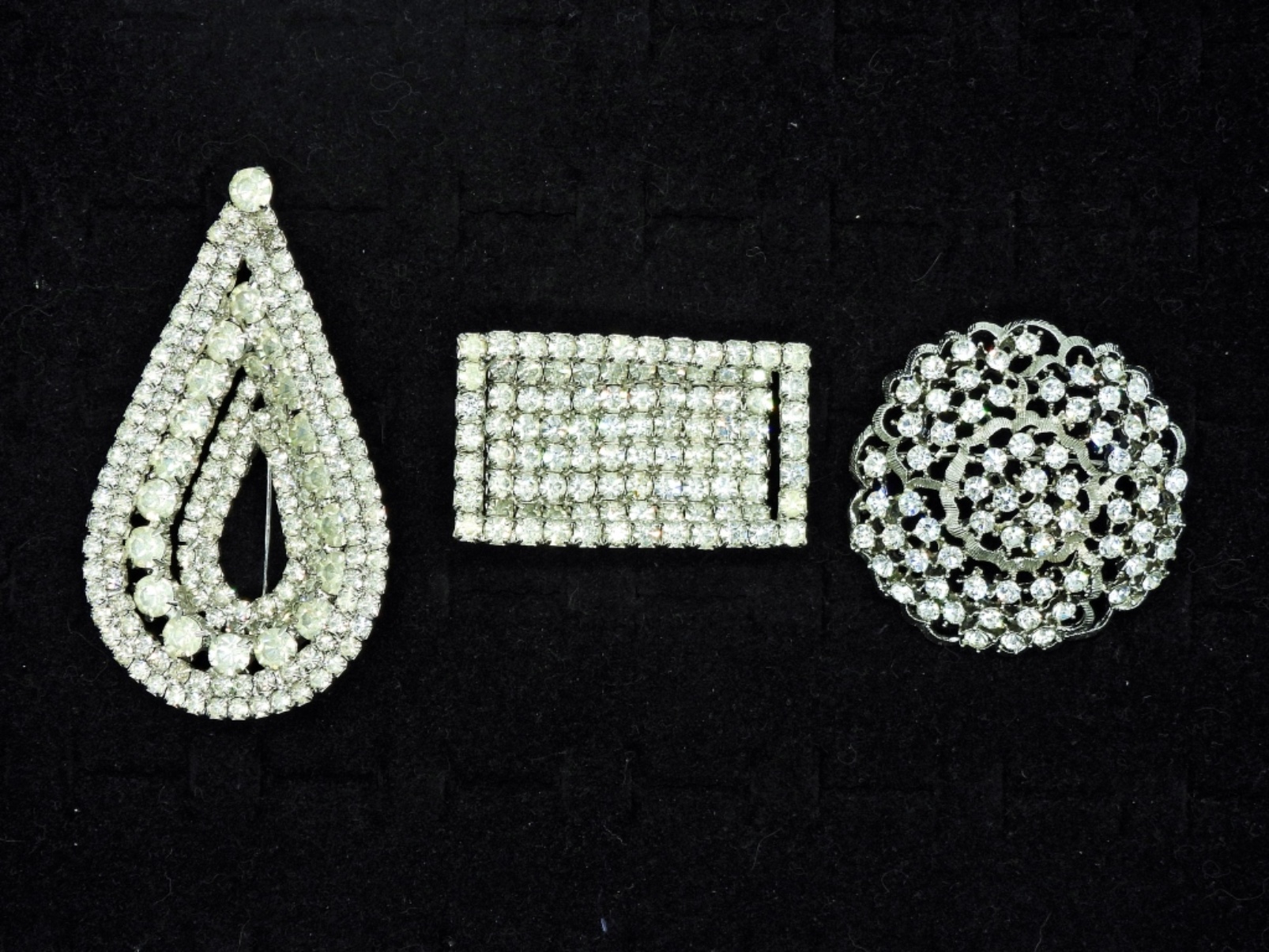 Three Vintage White Rhinestone Brooches.