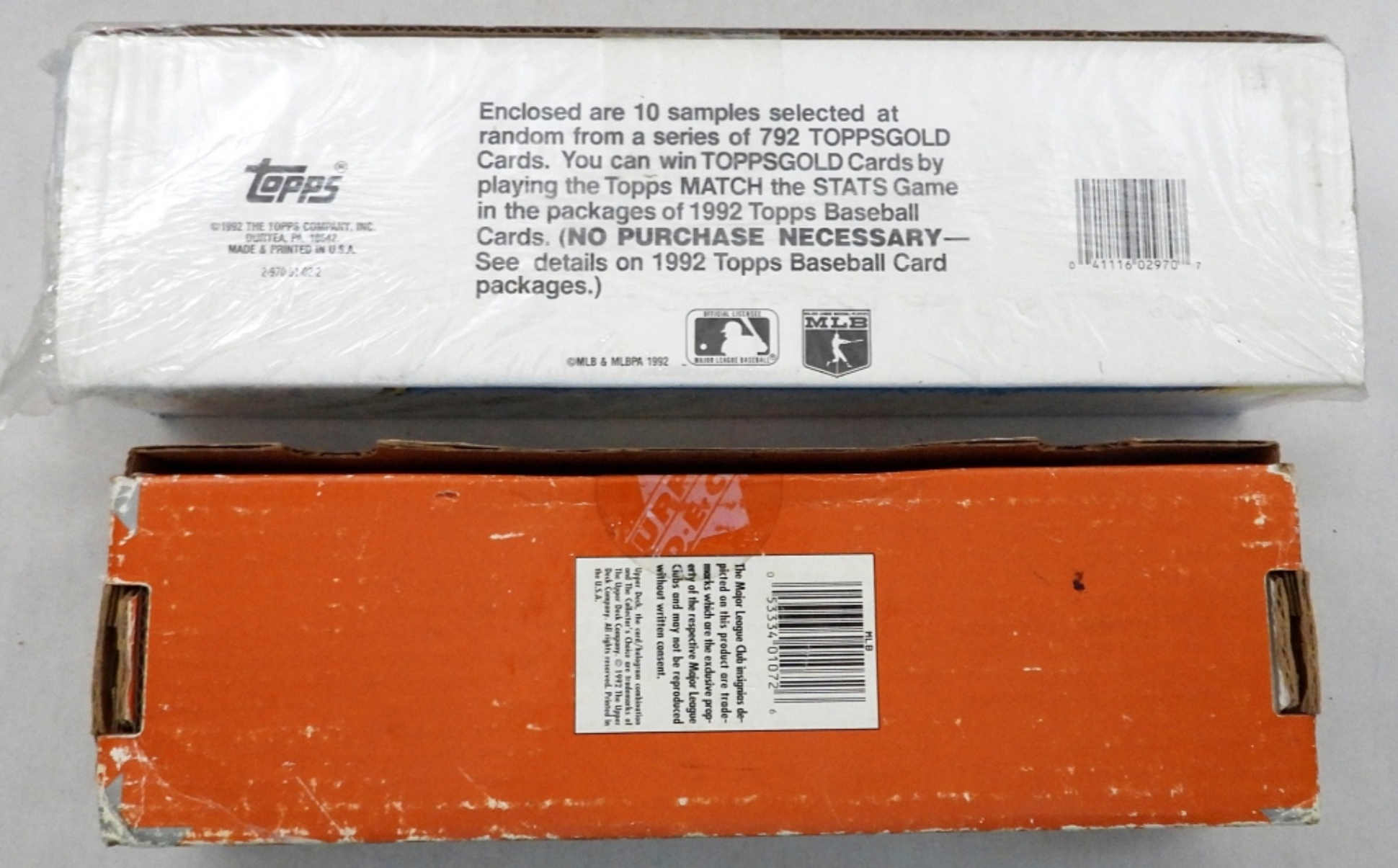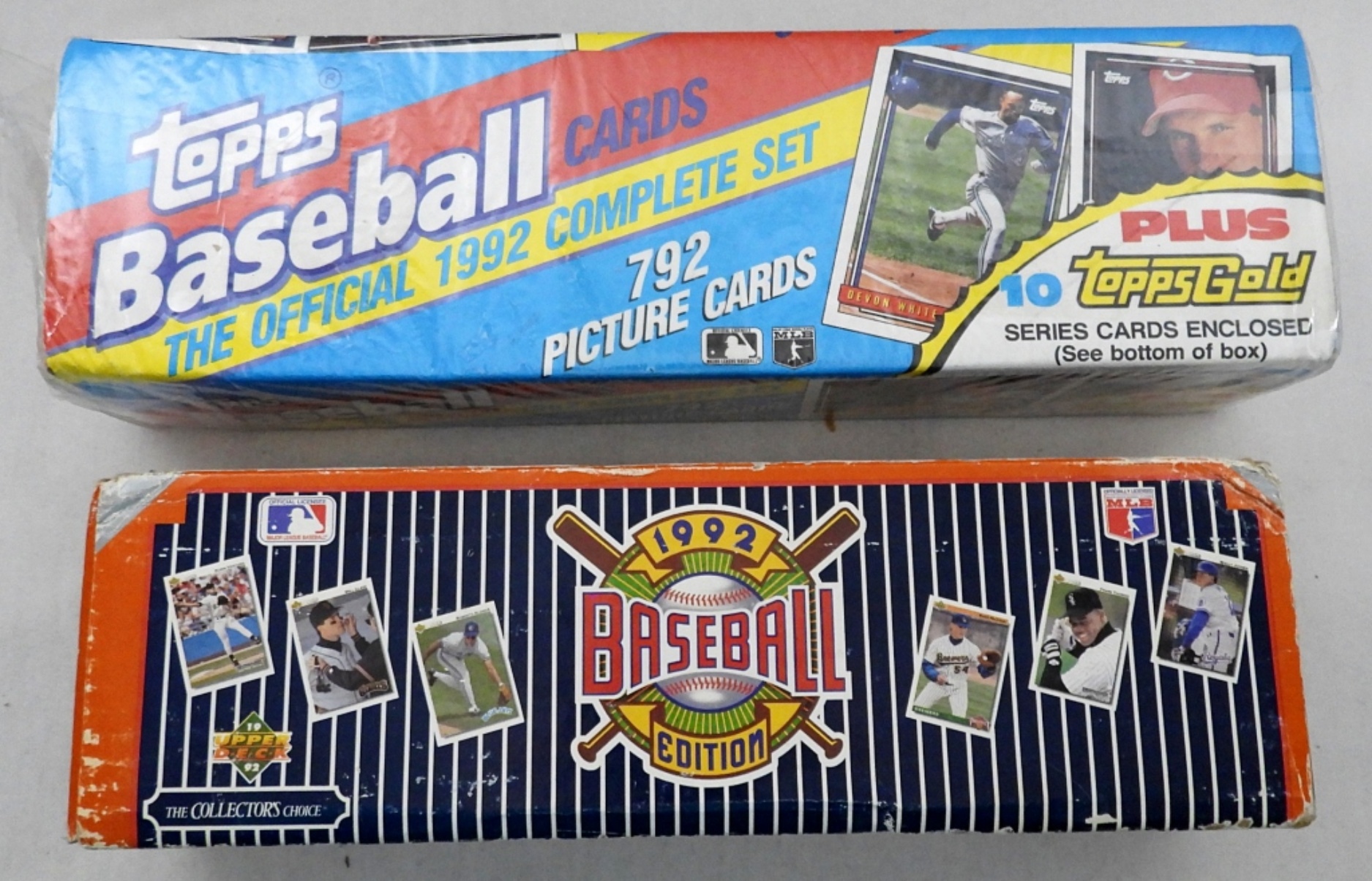 1992 TOPPS BASEBALL CARDS THE OFFICIAL 1992 COMPLETE SET 792 PICTURE CARDS – FACTORY SEALED, SEAL LIGHTLY BROKEN; 1992 UPPER DECK BASEBALL COMPLETE SET