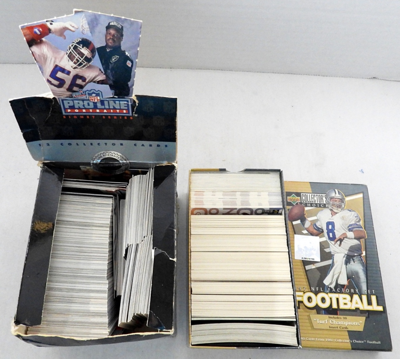 1991 NFL PRO LINE PORTRAITS SIGNET SERIES FOOTBALL BOX; 1997 UPPER DECK COLLECTOR’S CHOICE NFL FOOTBALL FACTORY SET 340 CARDS; UNVERIFIED COMPLETE SETS