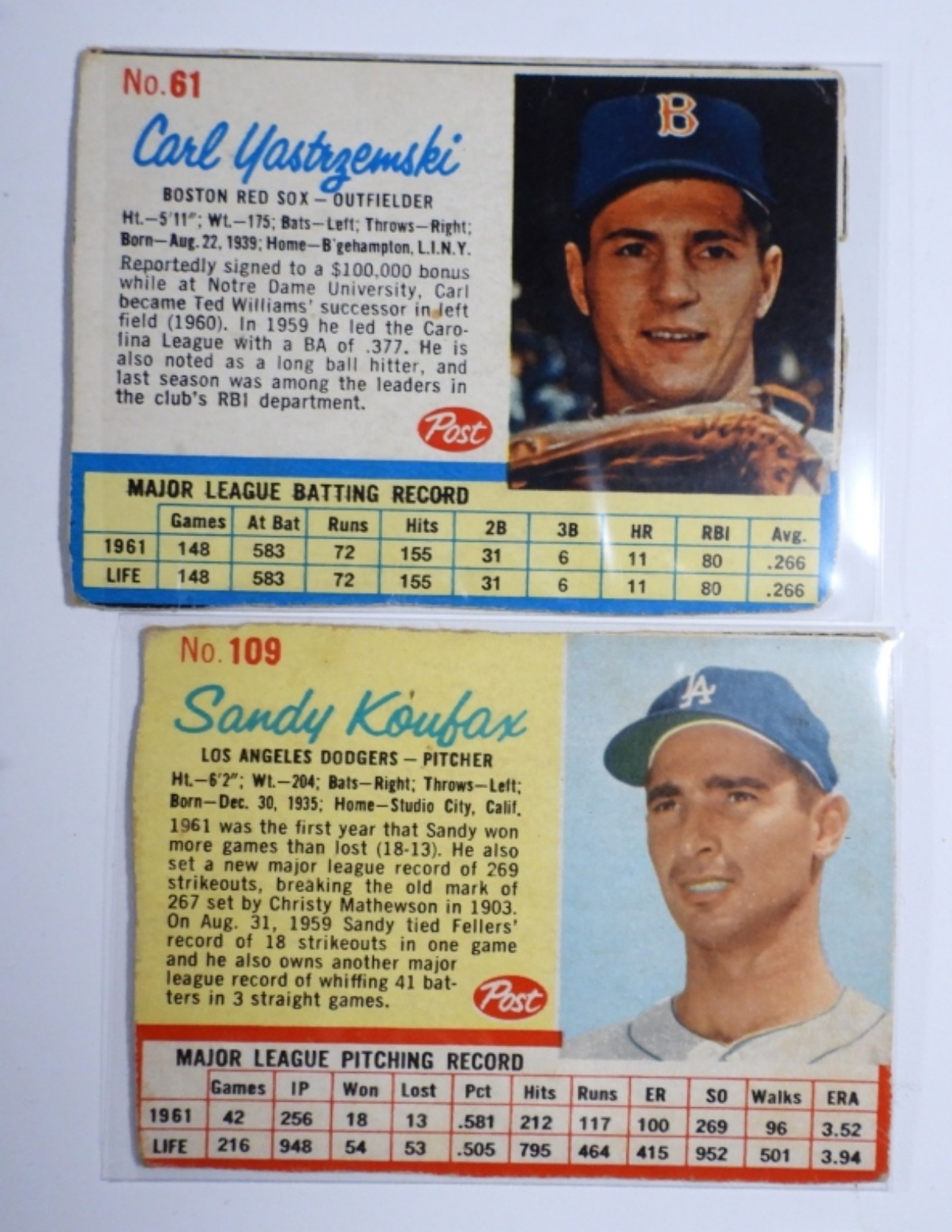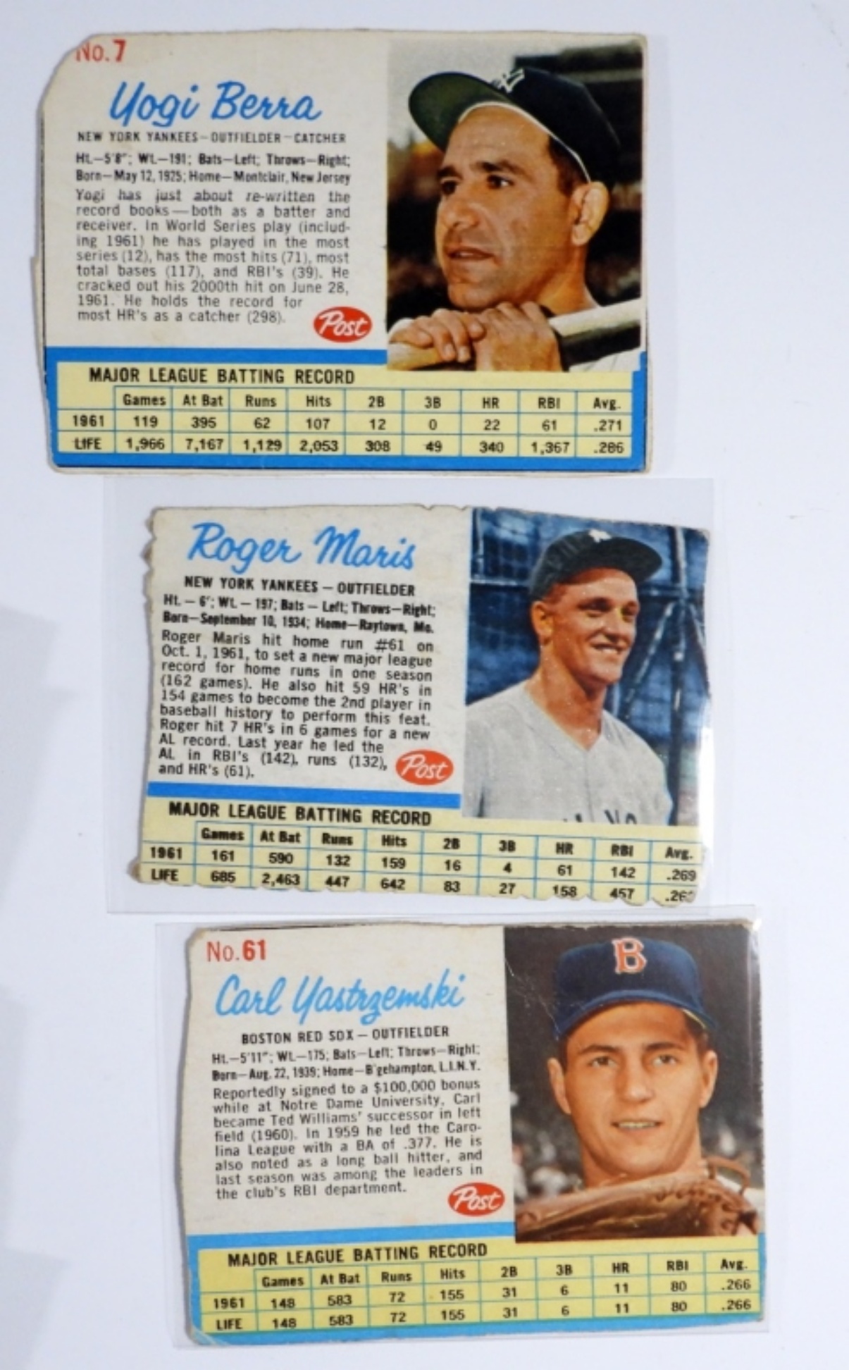 KOUFAX, YAZ, MARIS, BERRA – GREAT MIX – MOSTLY DIFFERENT VG/GOOD or BETTER (4) 1963 POST