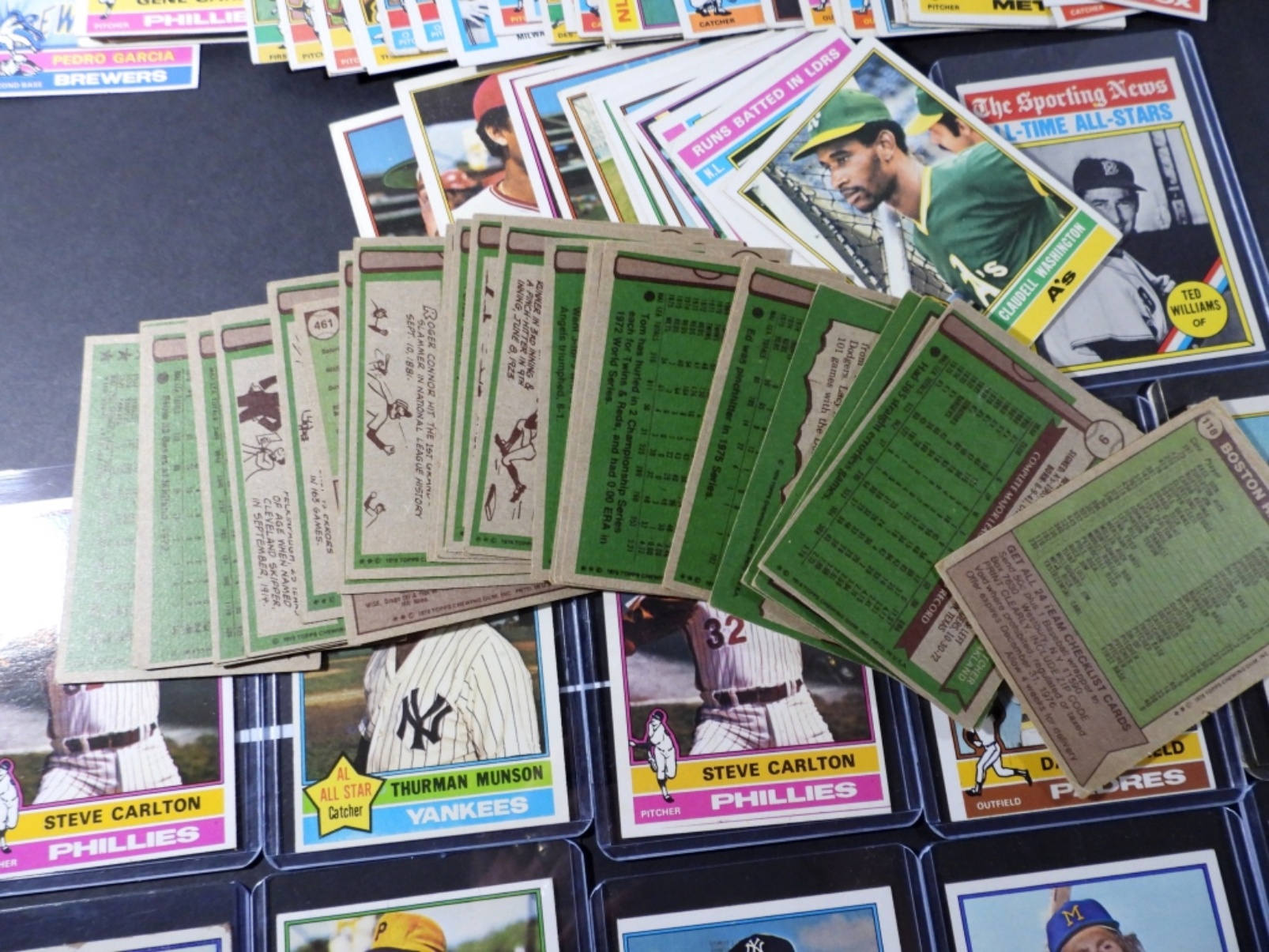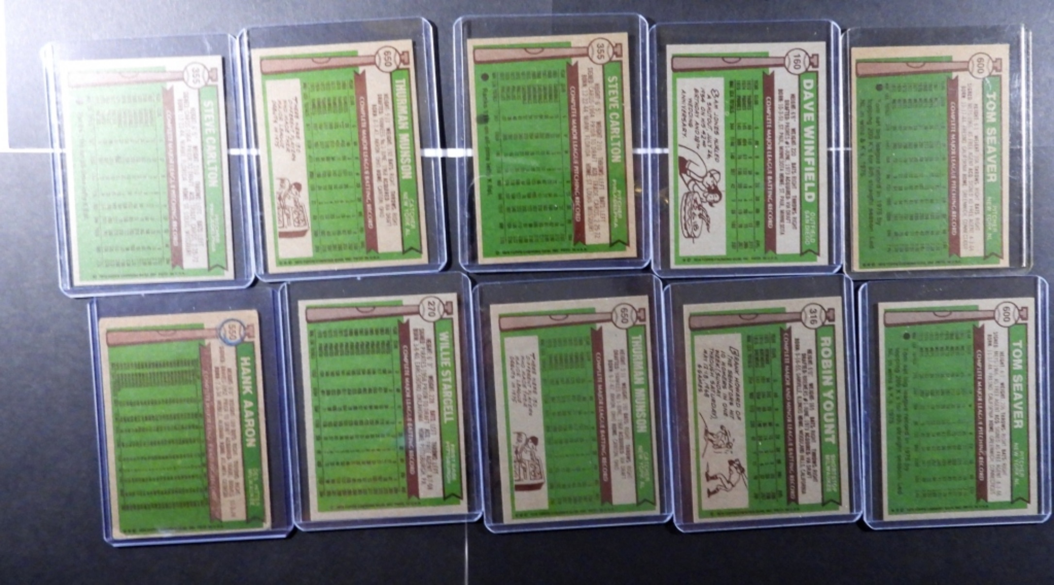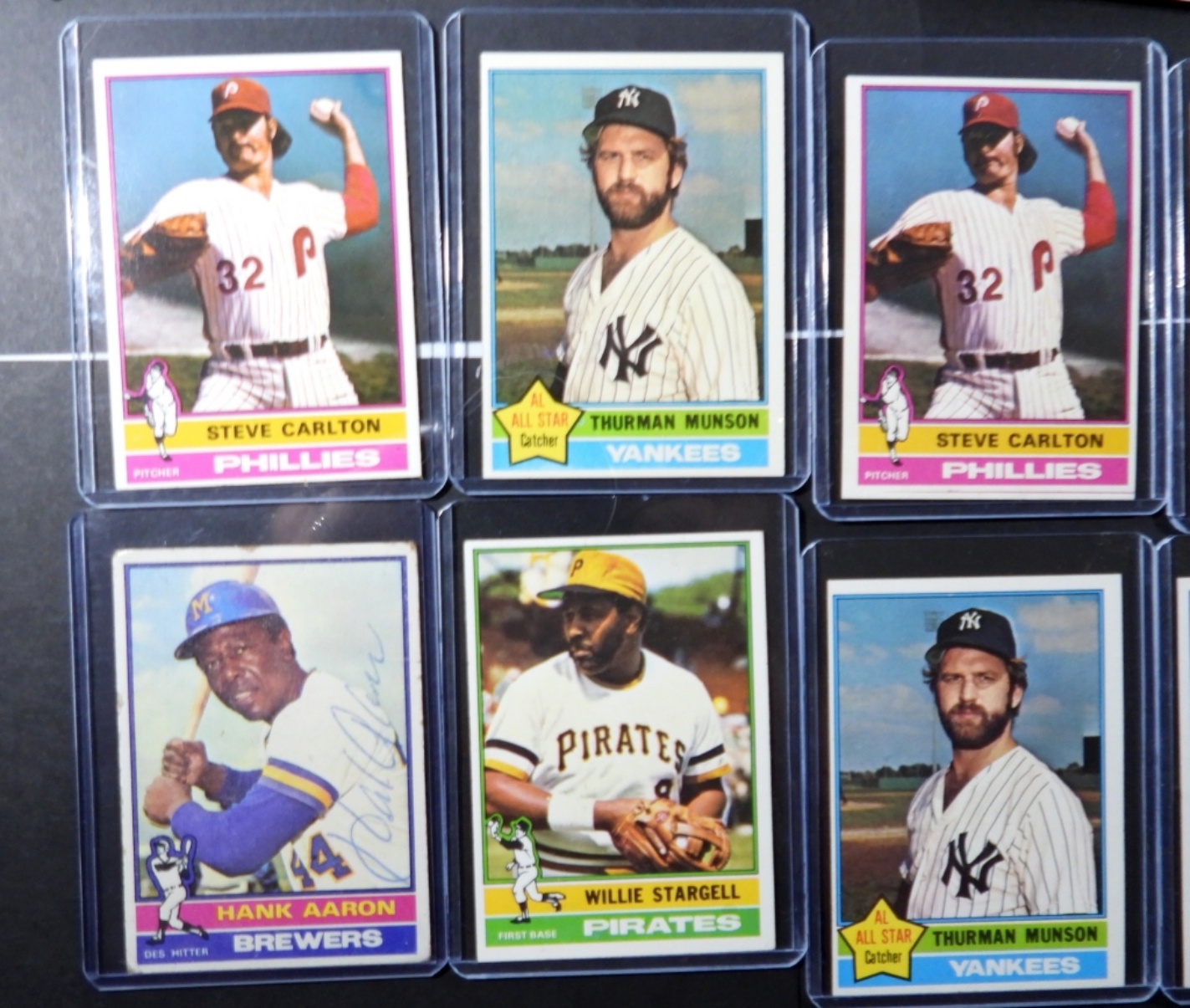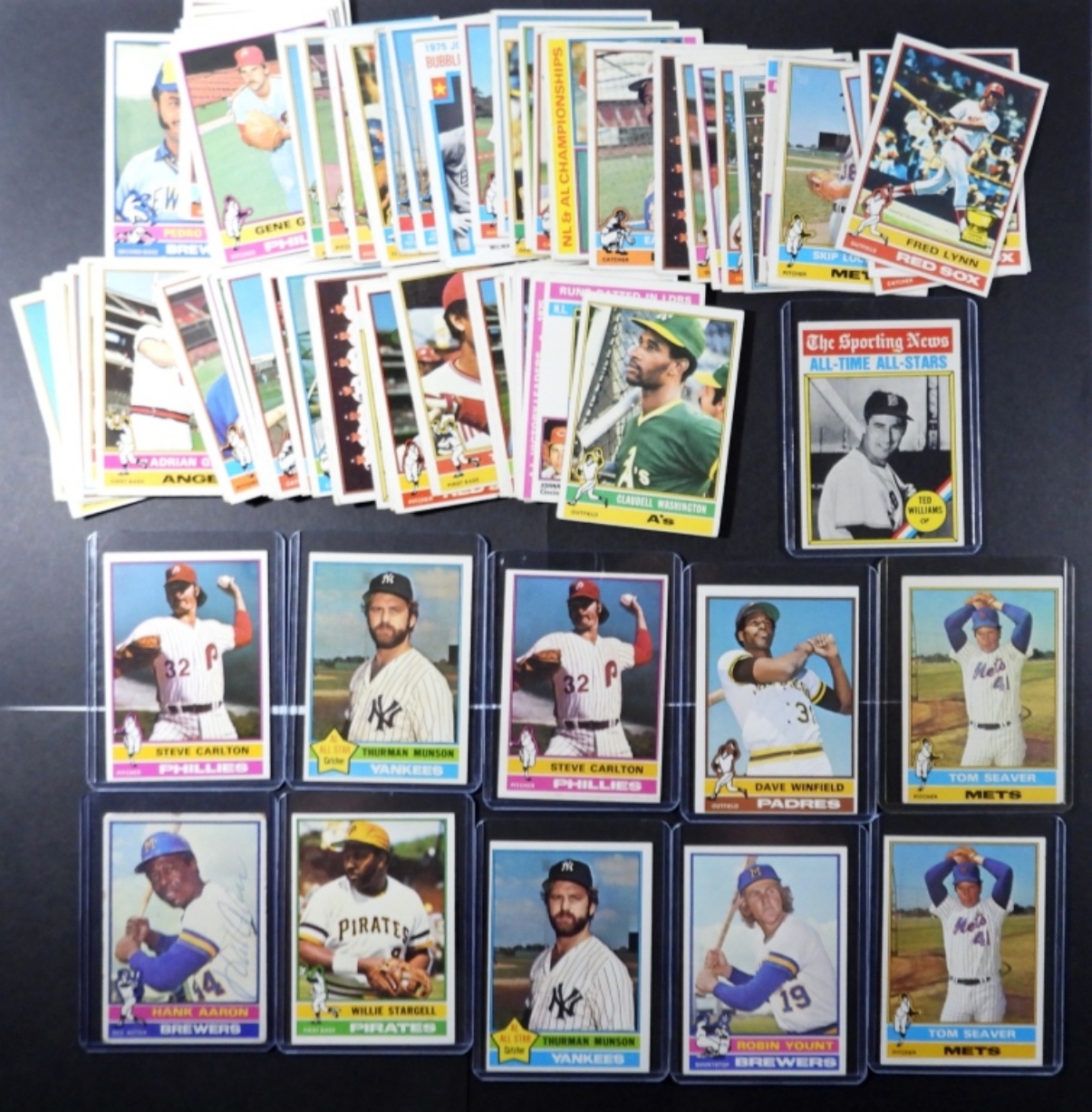 includes AARON VG, (2) SEAVER, (2) CARLTON, WINFIELD, (2) MUNSON, STARGELL, YOUNT, TED WILLIAMS – OVER EX LOT
