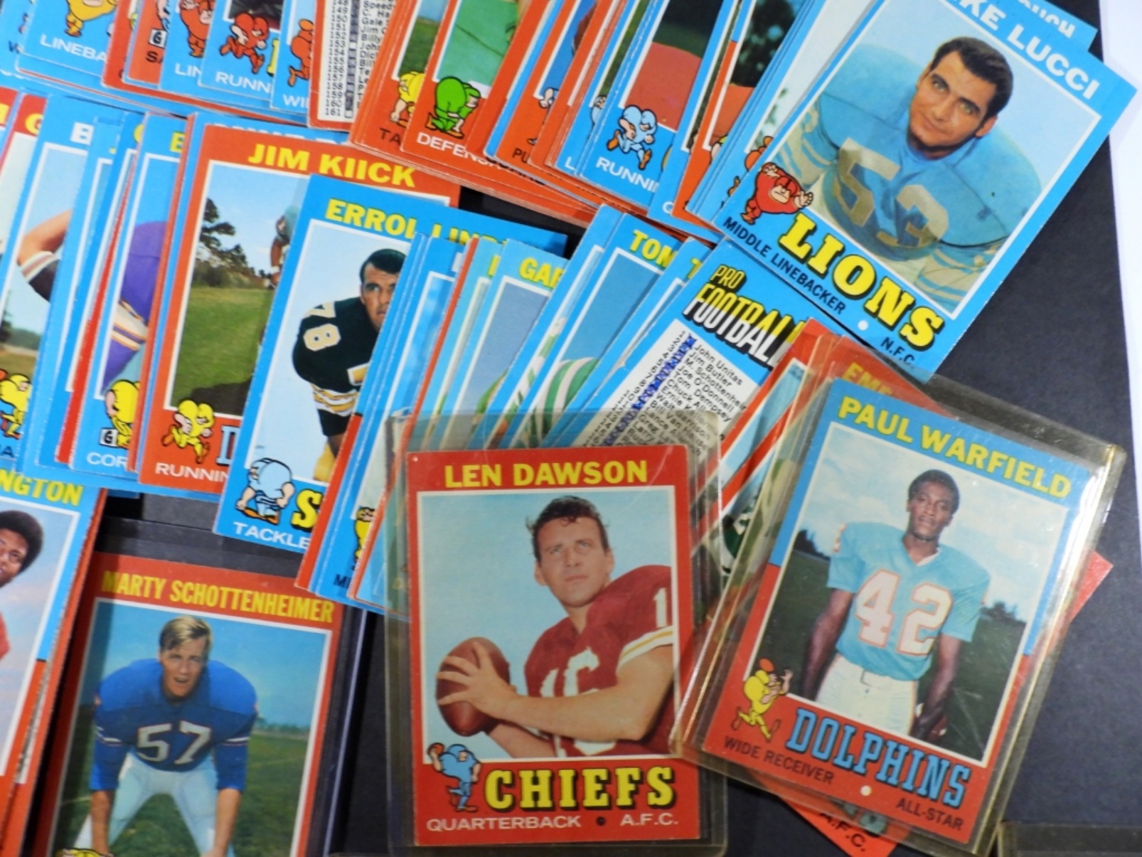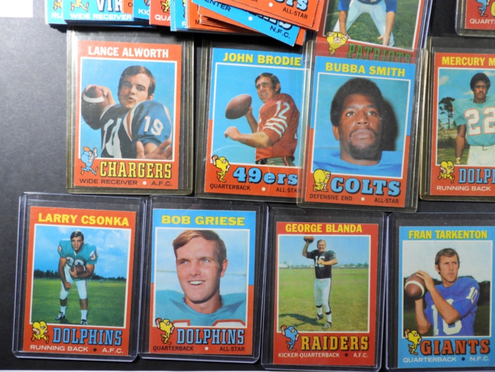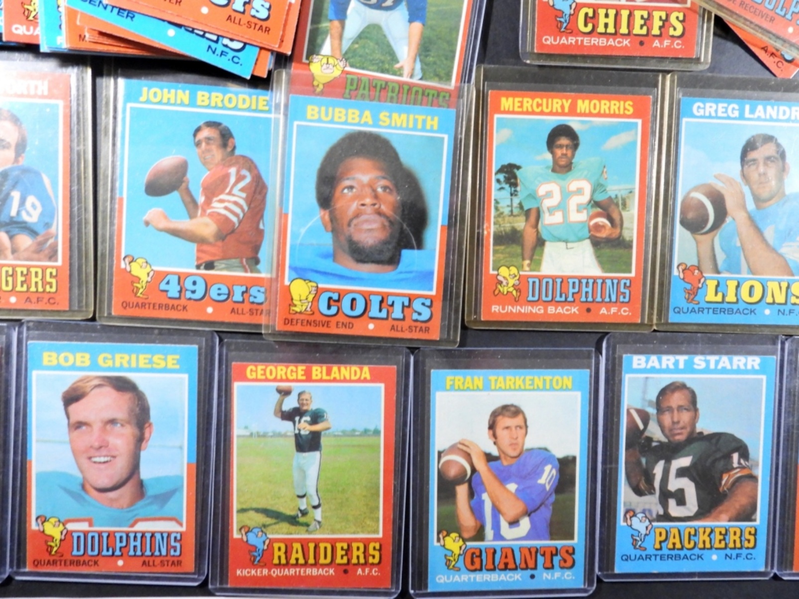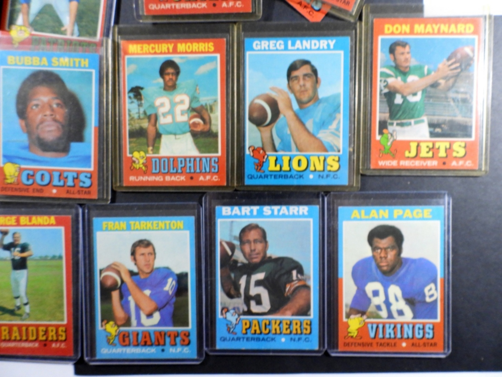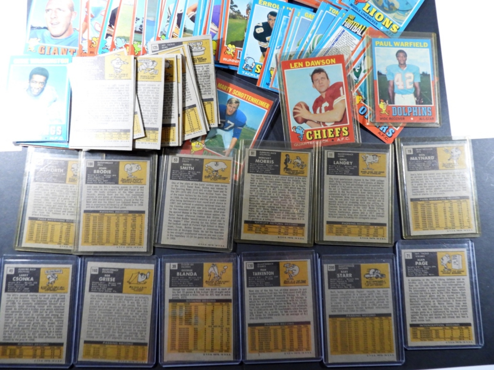 includes DAWSON, WARFIELD, CSONKA, ALWORTH, BRODIE, SMITH, MORRIS, LANDRY, MAYNARD, PAGE, GRIESE, BLANDA, STARR, TARKENTON & MORE – OVERALL NICE EX/EM