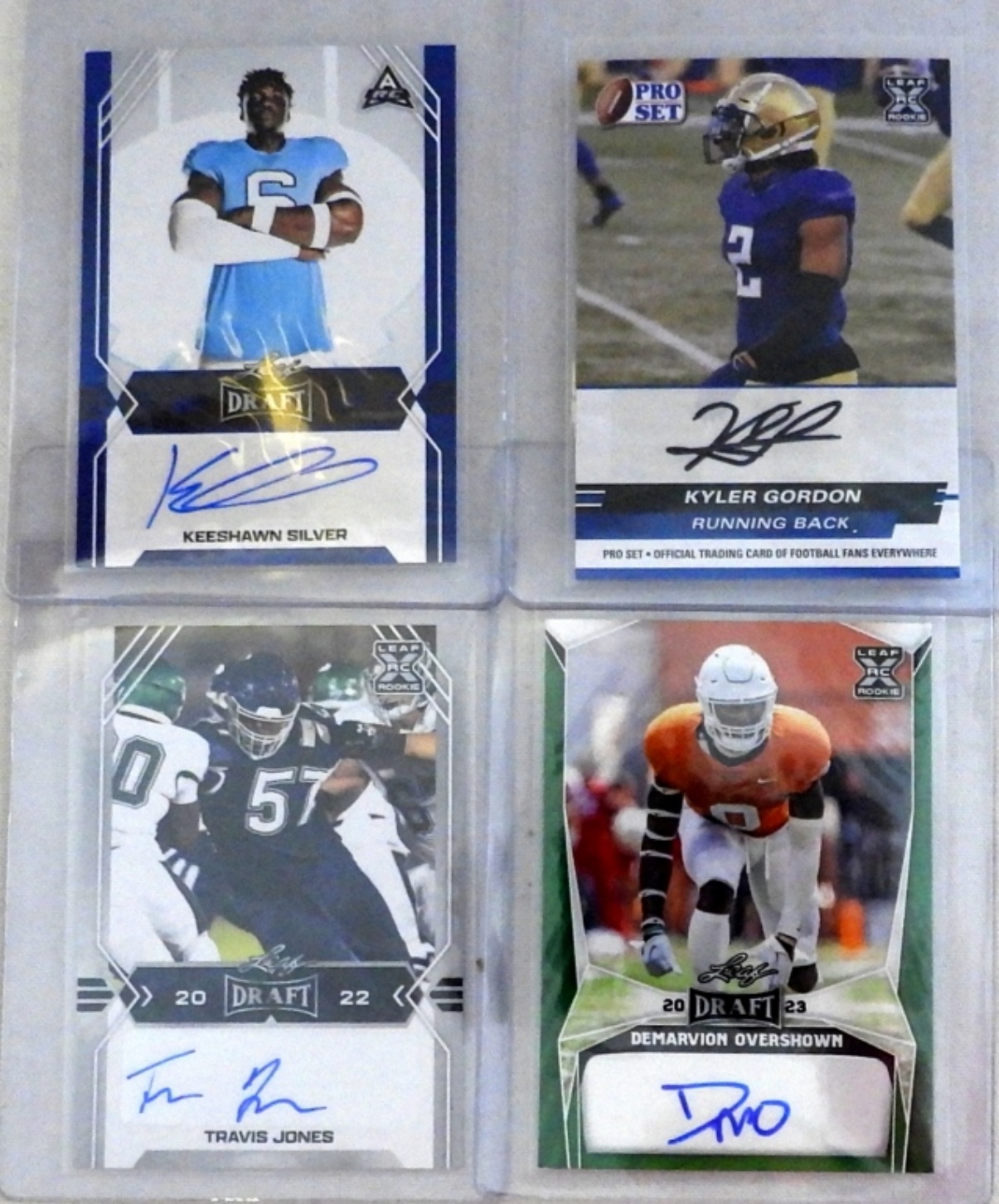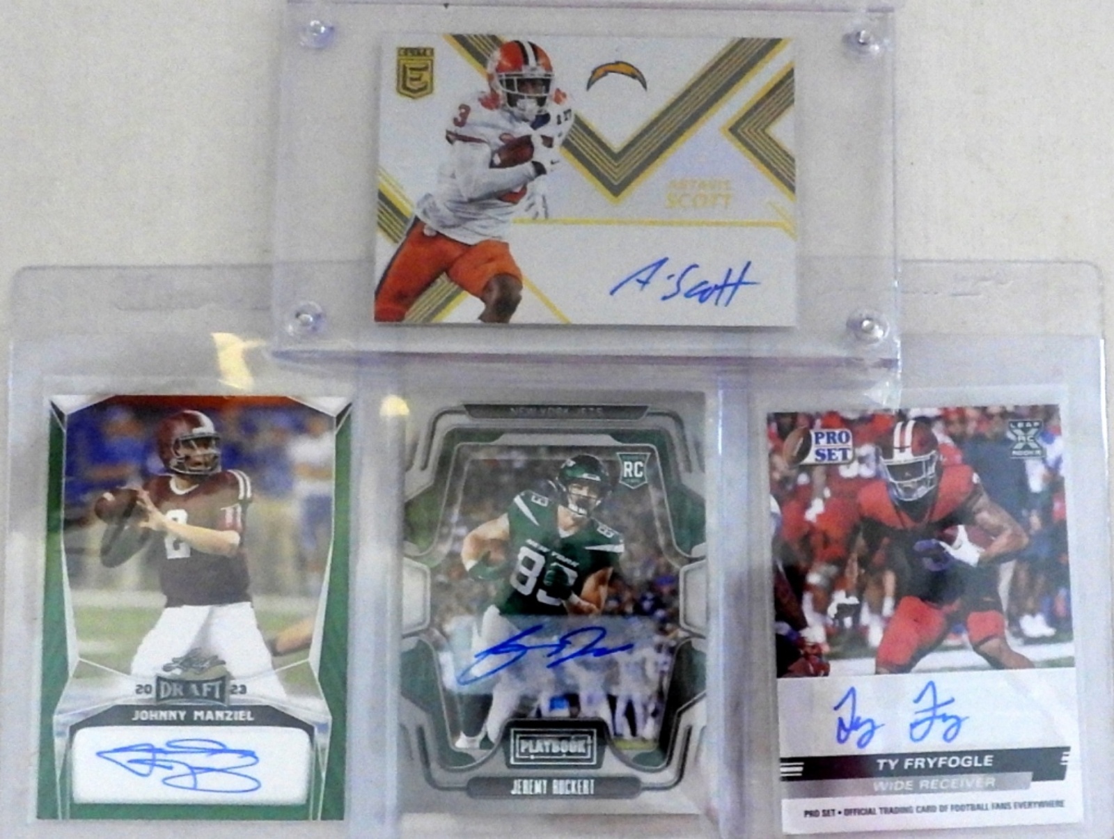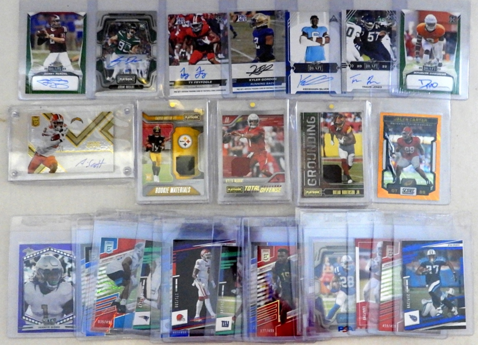 22-PREMIUM FOOTBALL CARDS, 3-MATERIAL INSERT CARDS, 8-AUTOGRAPHED FACTORY ISSUED AUTHENTIC – LOADED PREMIUM CARD LOT