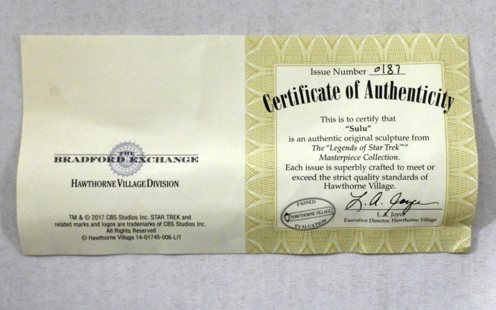 SCULPTURE # 0187, 2017, LIMITED EDITION, LIEUTENANT SULU, IN GOOD CONDITION, HAS CERTIFICATE