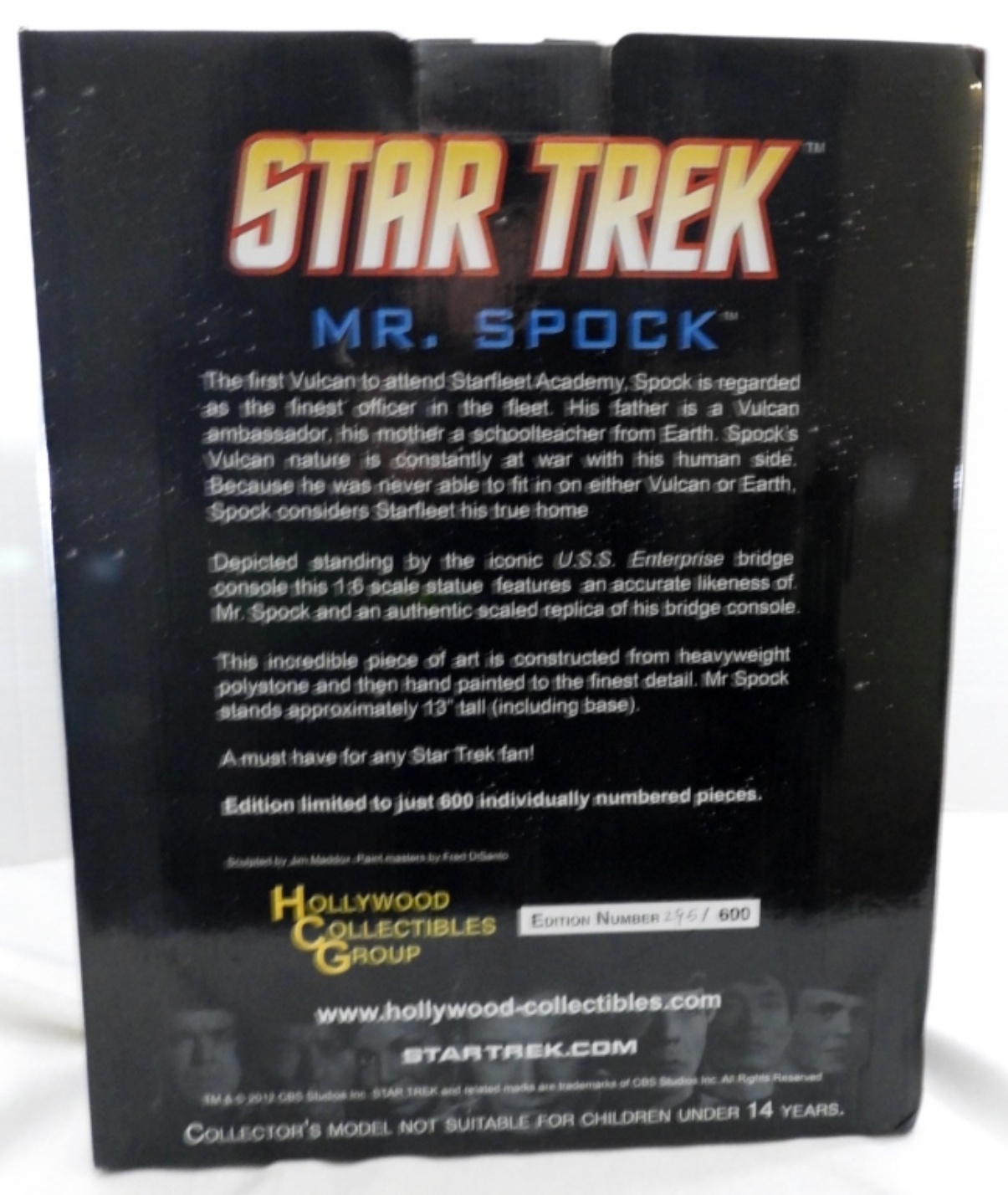 EDITION NUMBER 295/600, IN ORIGNAL BOX, FROM HOLLYWOOD COLLECTIBLES GROUP, 2012, GOOD CONDITION (FLEET ON THE BACK STARTING TO LIFT)