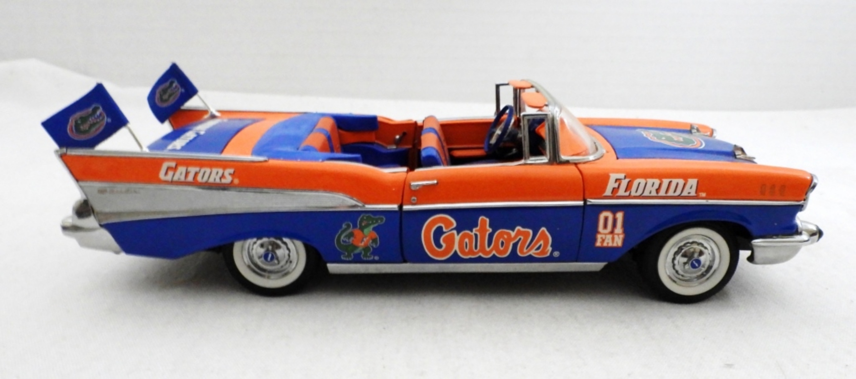 IN THE ORIGINAL BOX, DOORS, TRUNK, AND HOOD OPEN AND CLOSE, 1957 CHEVROLET BEL AIR, DANBURY MINT MARKED ON BOTTOM OF CAR