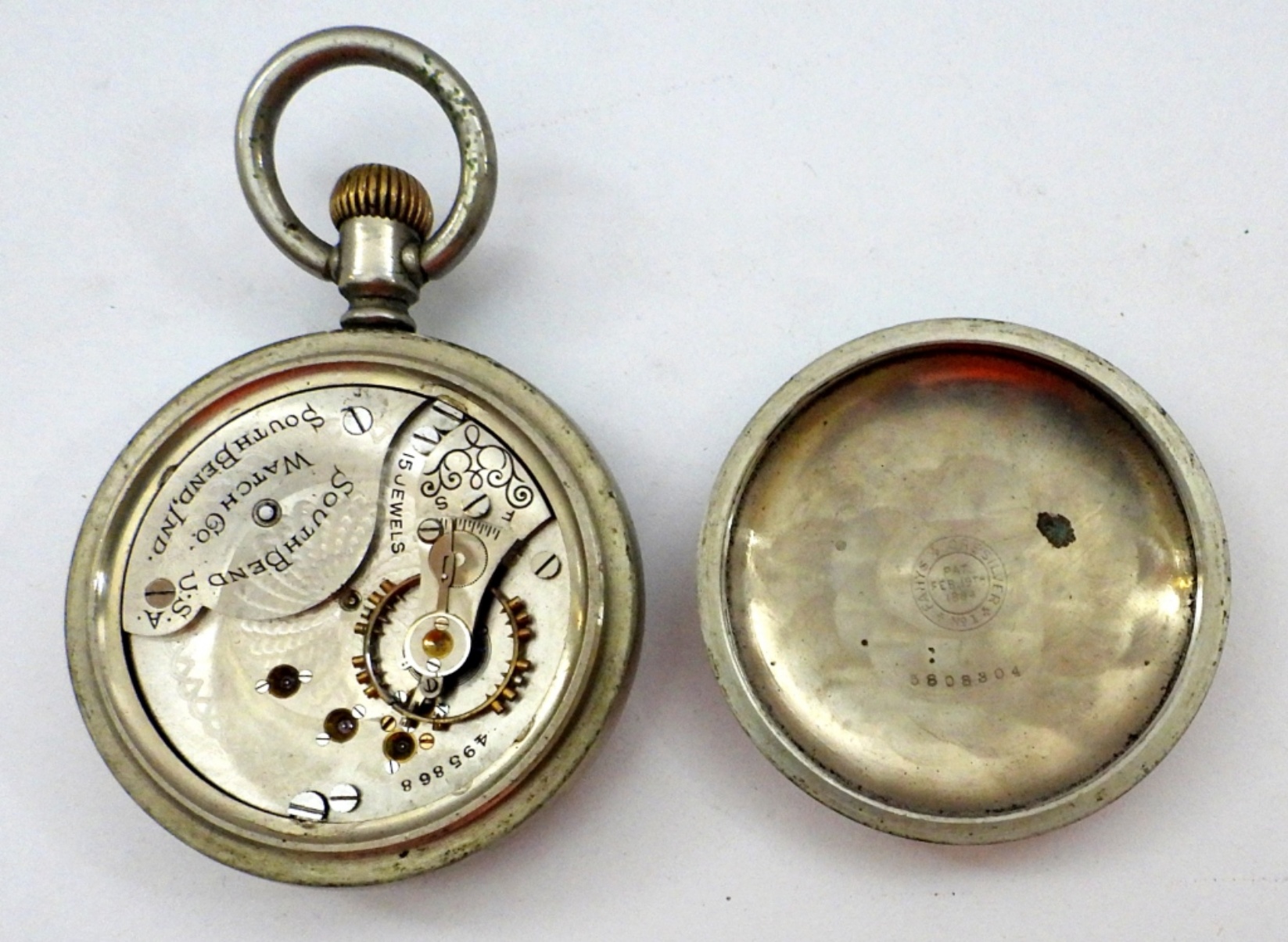 ANTIQUE POCKET WATCH BY SOUTH BEND WATCH CO., SERIAL #: 495868, GRADE: 331, SIZE: 18s, JEWELS: 15j, VERY NICE CONDITION, NOT WORKING