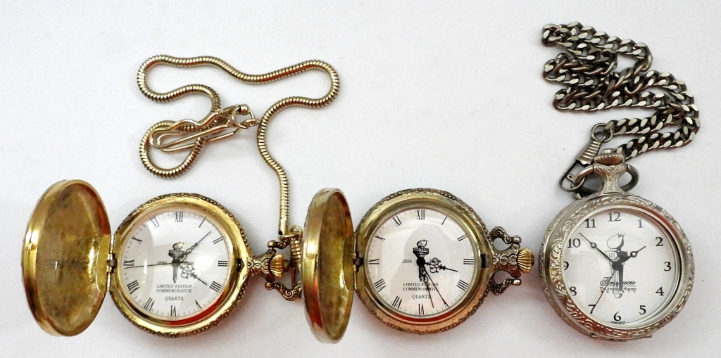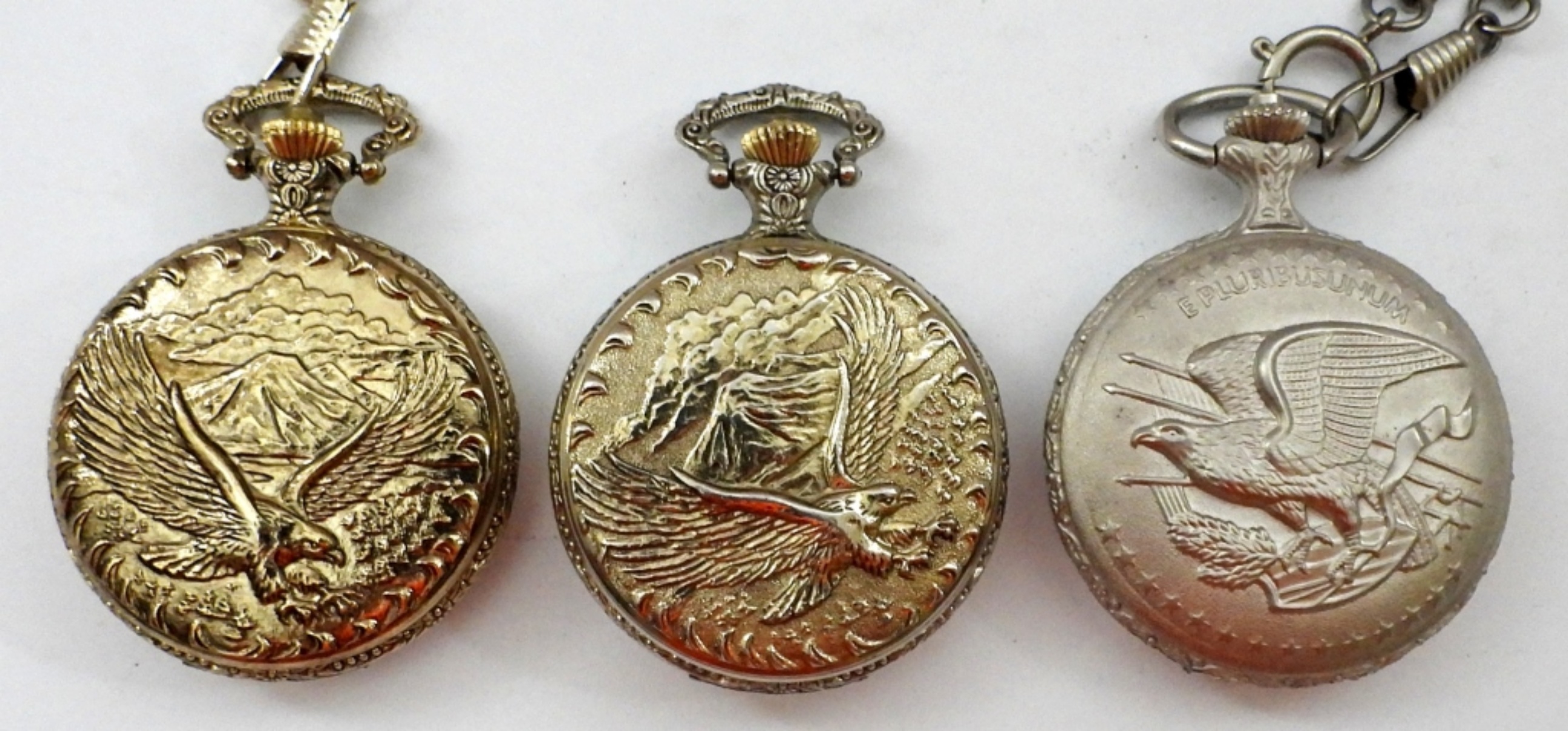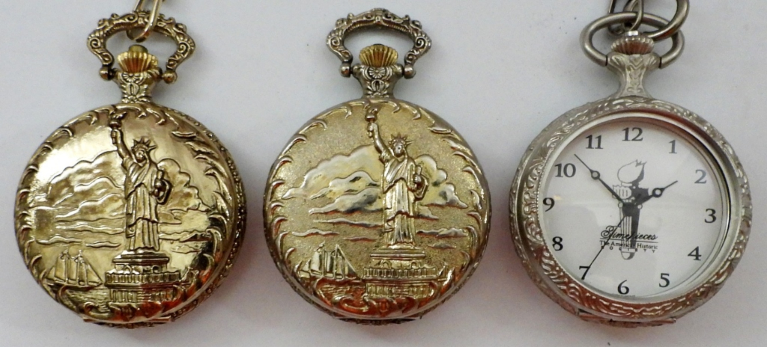 STATUE OF LIBERTY & AMERICAN BALD EAGLE, QUARTZ POCKET WATCHES VERY NICE NOT IN WORKING CONDITION