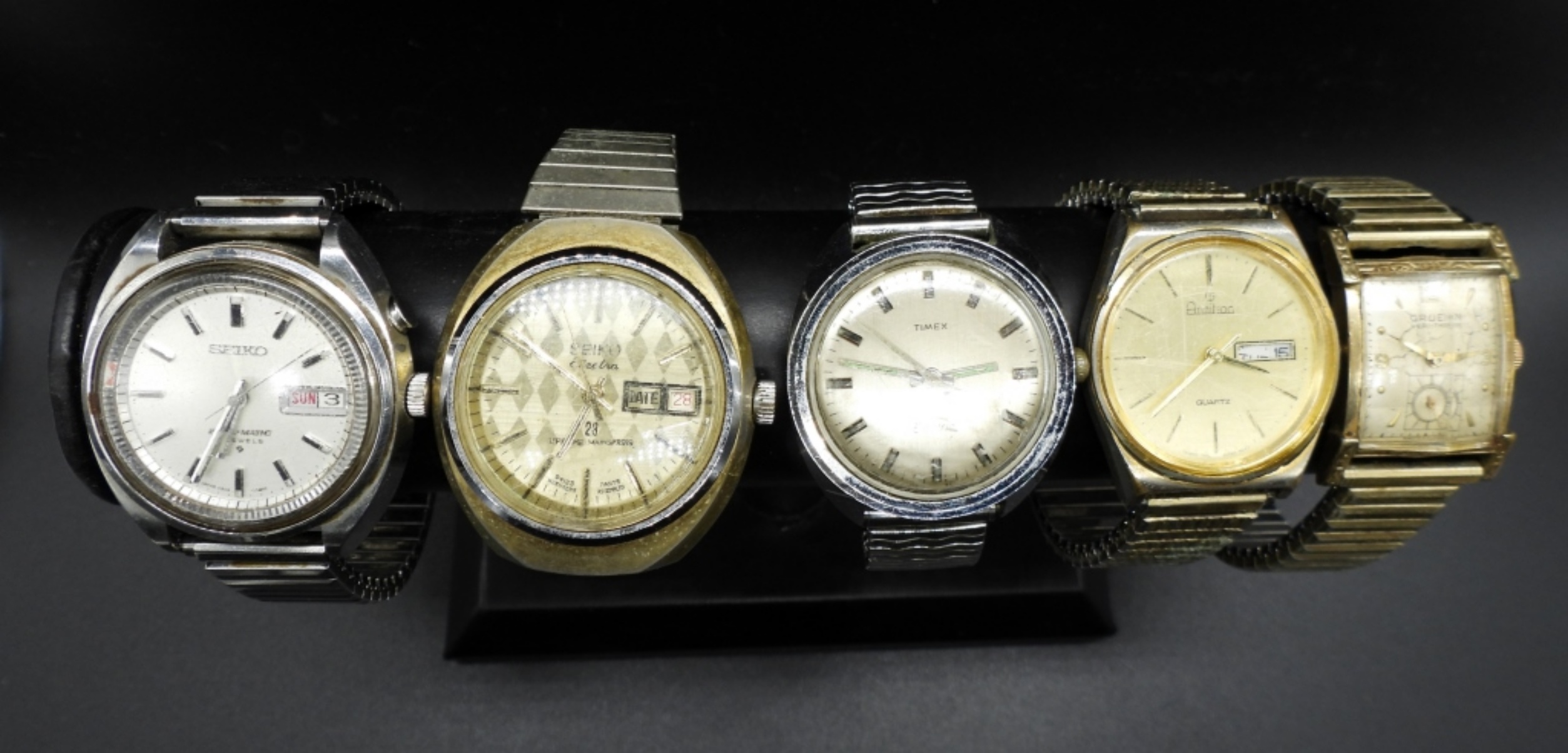 NOT TESTED, 1 TIMEX ELECTRIC, 2 SEIKO, 1 GRUEN, 1 ARMITRON QUARTZ