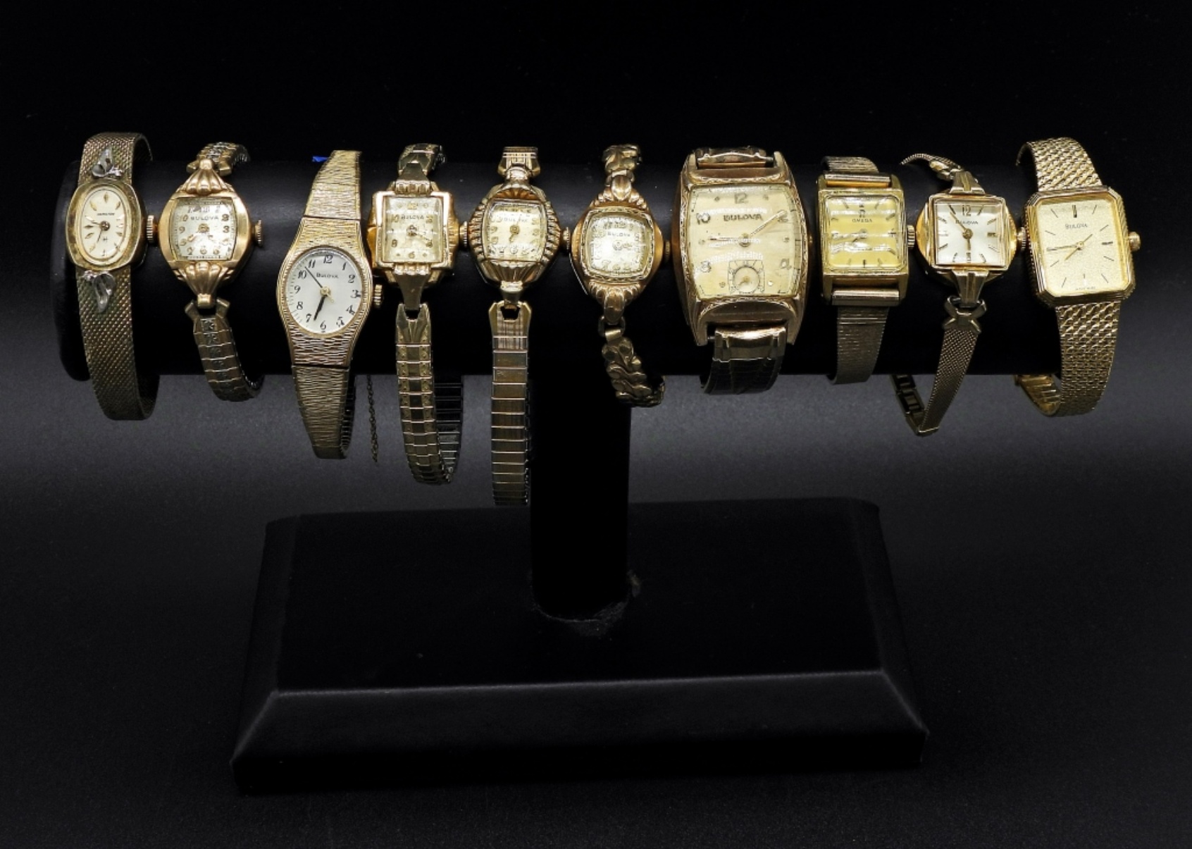 NOT TESTED AS TO WORKING OR NOT – TEN BULOVA BRAND, GOLD TONE VINTAGE LADIES WATCHES