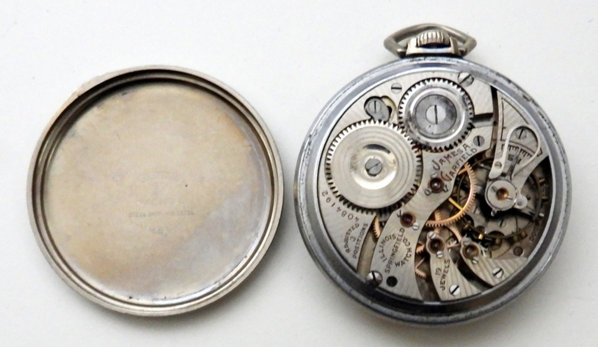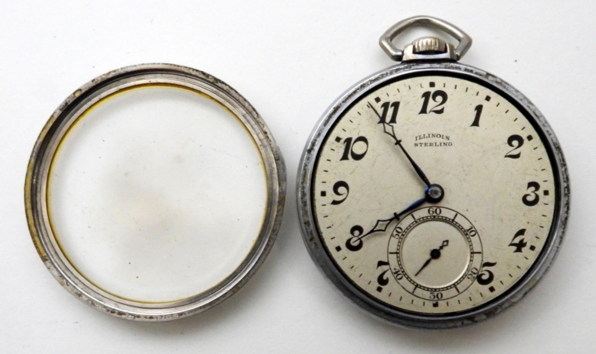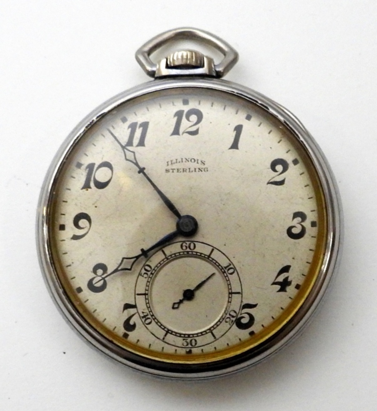 12 size, GRADE 427, SERIAL #4084192, WORKING CONDITION – NEEDS SERVICED (not of sterling silver – face is marked Illinois Sterling)