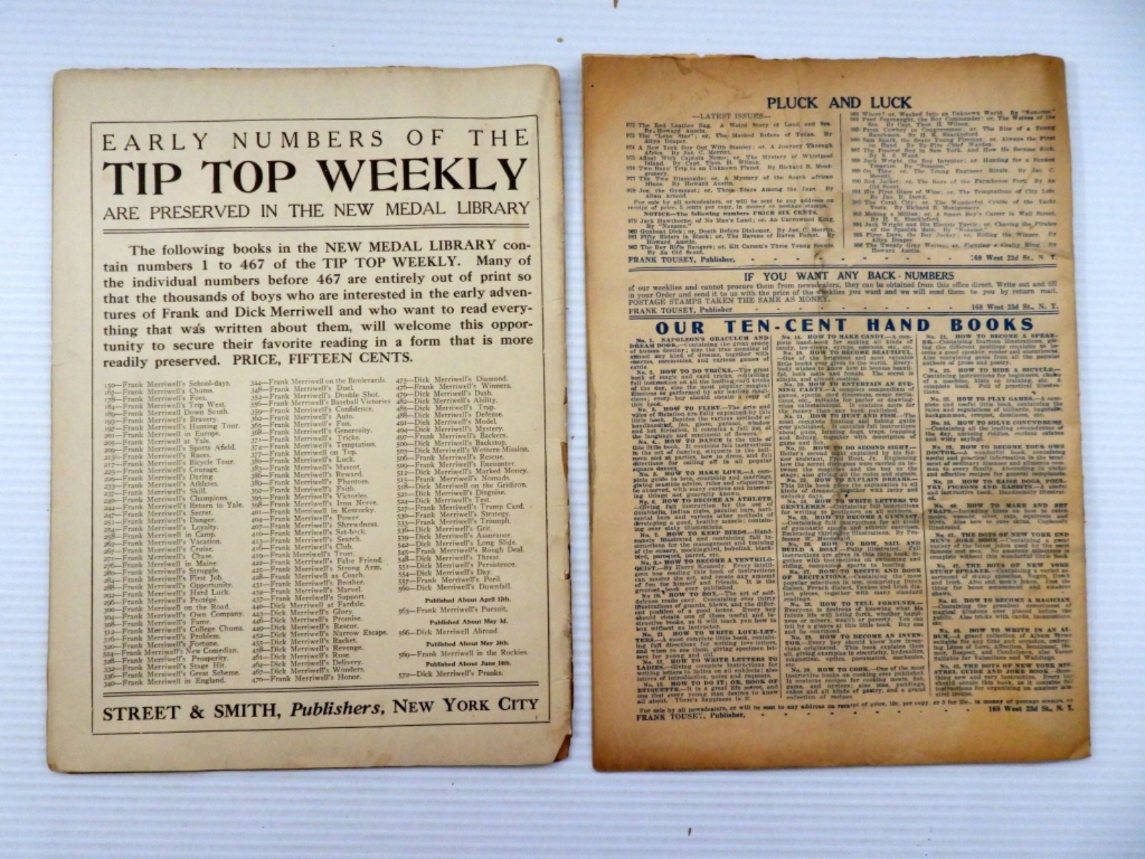 1910 No. 745 TIP TOP WEEKLY; 1917 No. 993 PLUCK AND LUCK – NICE CONDITION