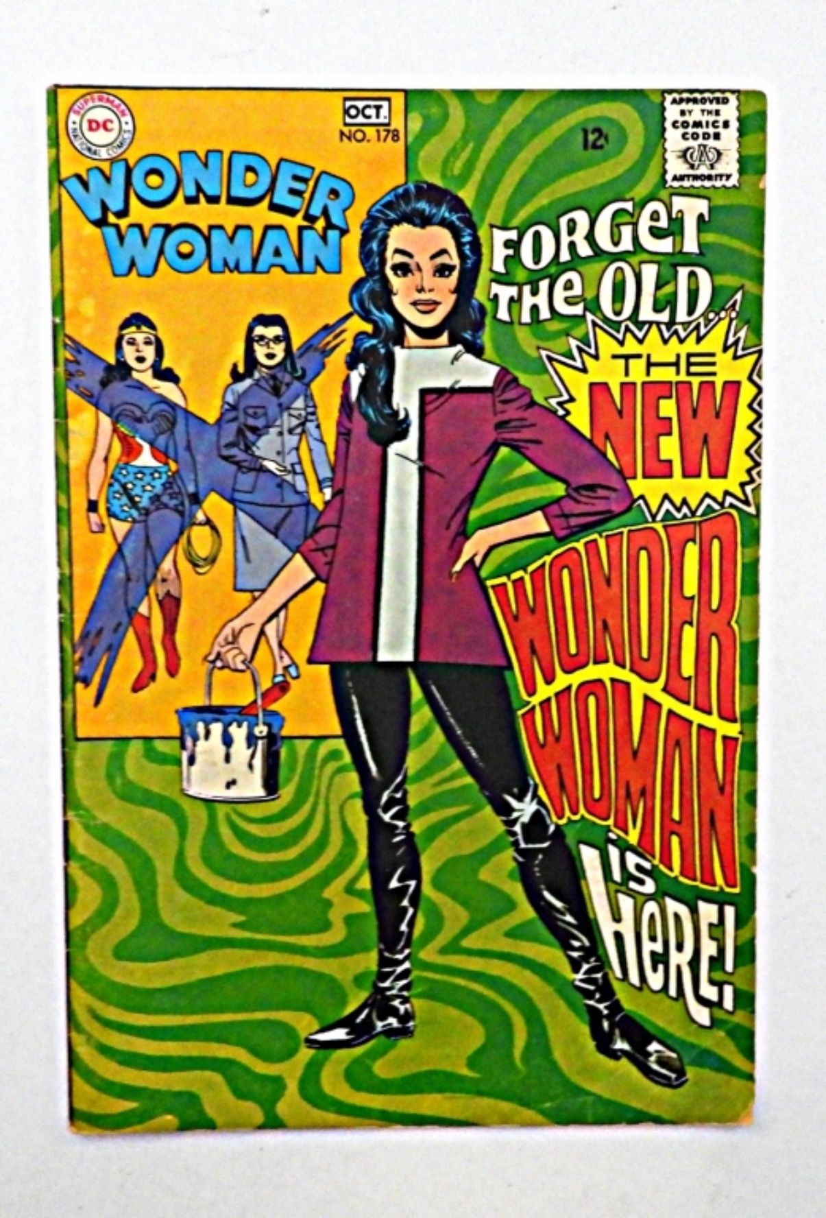 VERY GOOD, 1968 ISSUE #178, THIS ISSUE BEGINS A SHIFT TOWARD MODERNIZING DIANA PRINCE, THE ALTER EGO OF WONDER WOMAN.