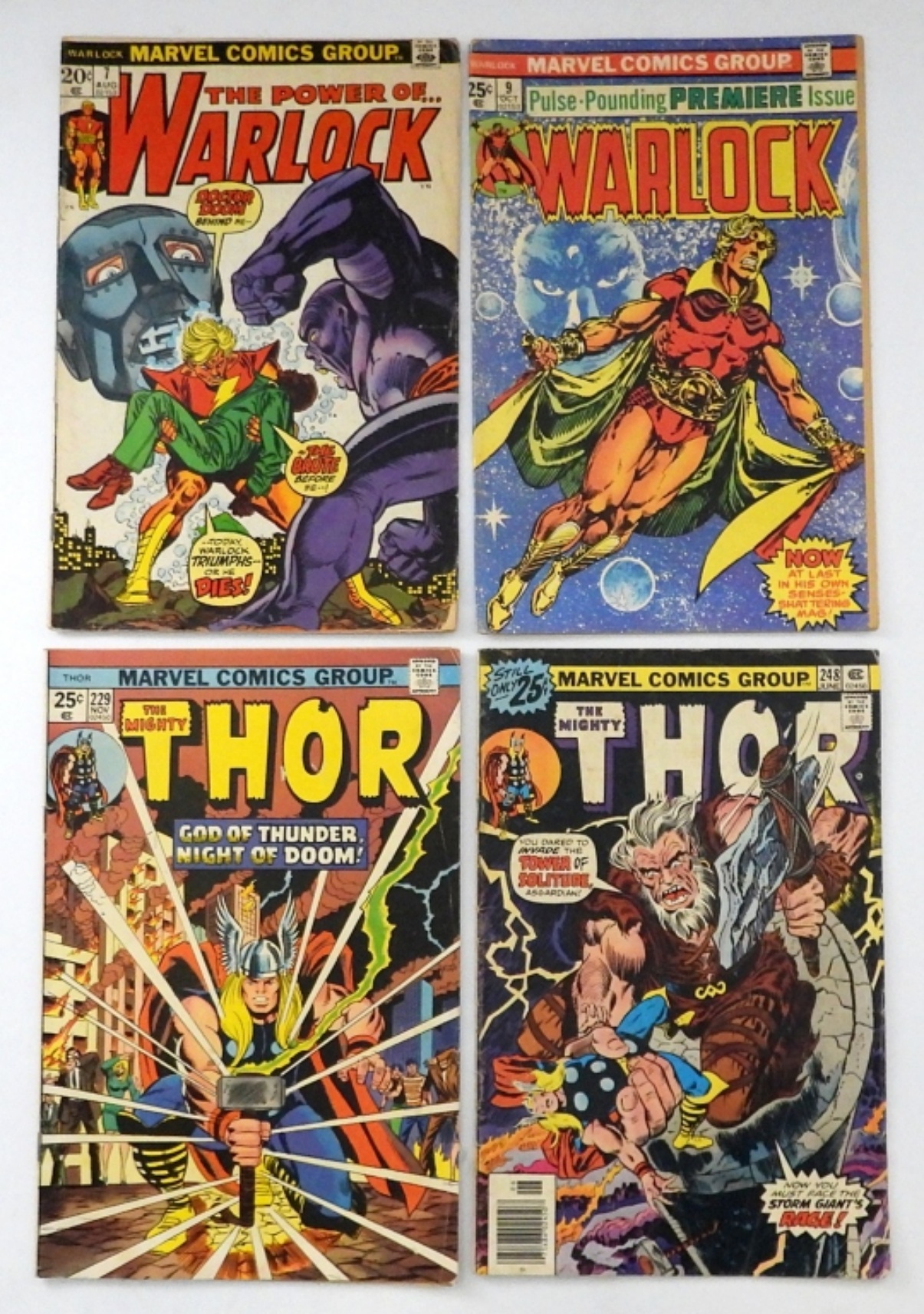 INCLUDING WARLOCK ISSUES #7 & #9; THE MIGHTY THOR ISSUES #229 & #248 – 1970’s MARVEL COMICS – VERY NICE CONDITION