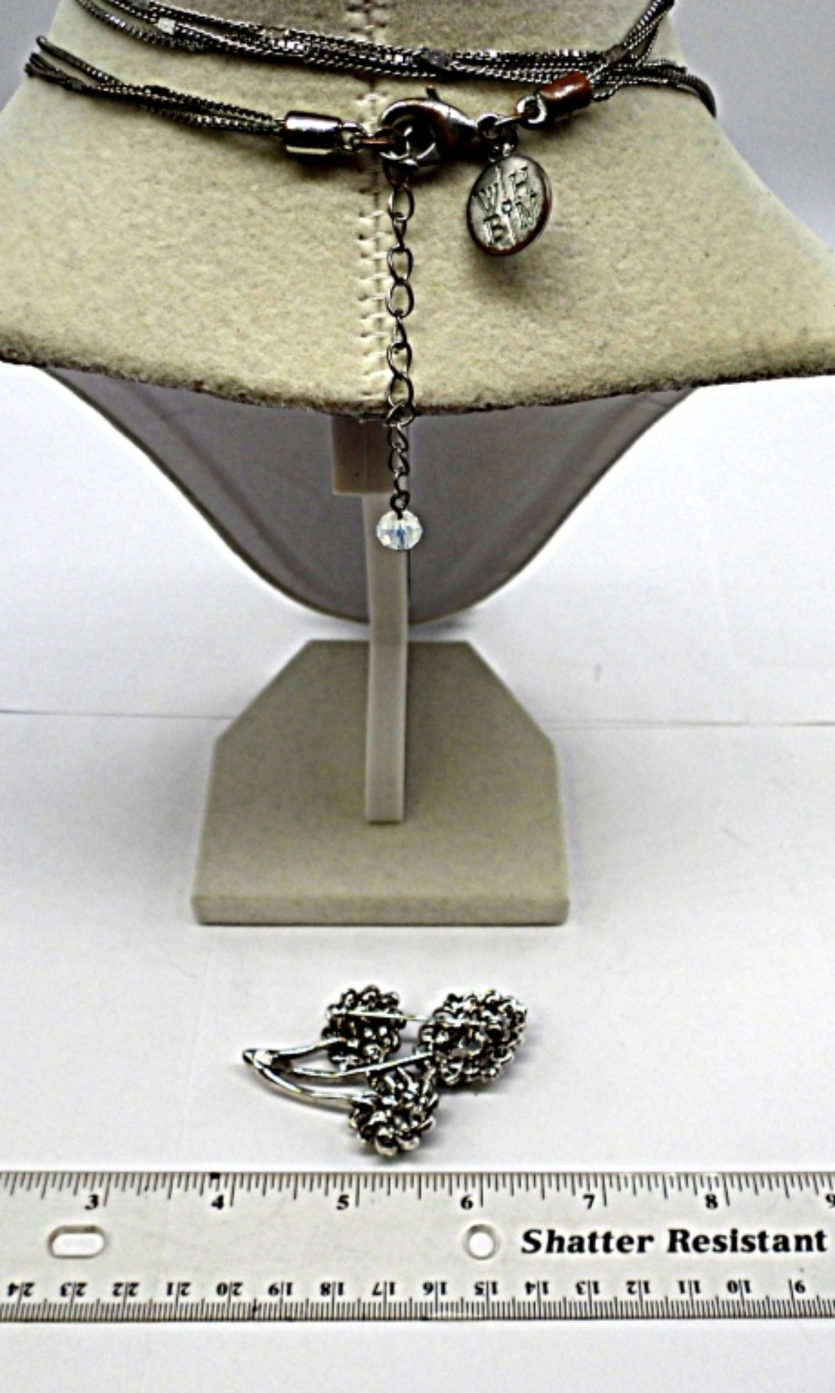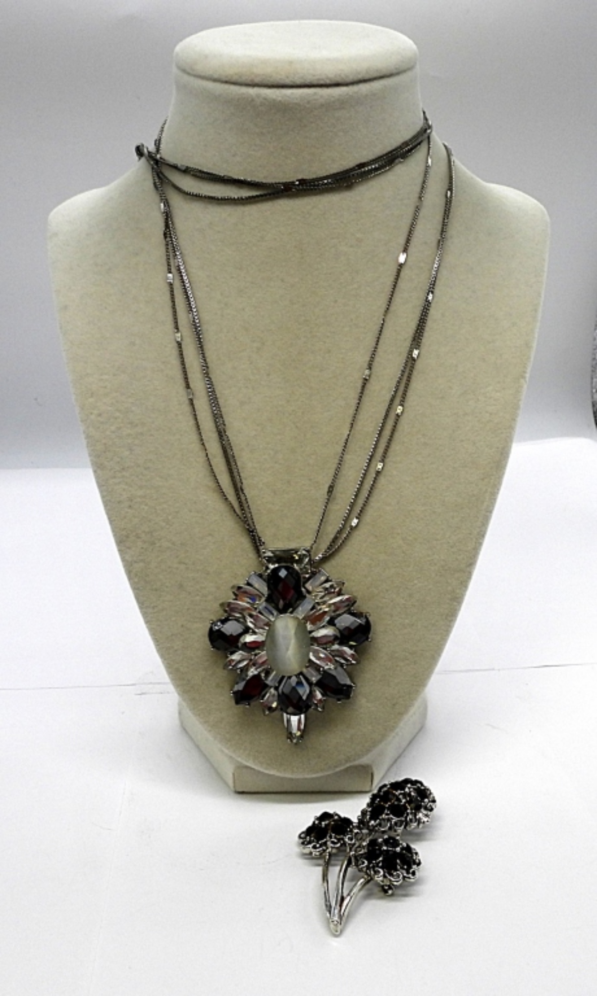 (1) 36″ SILVER TONE STATEMENT PIECE NECKLACE (1) BROOCH