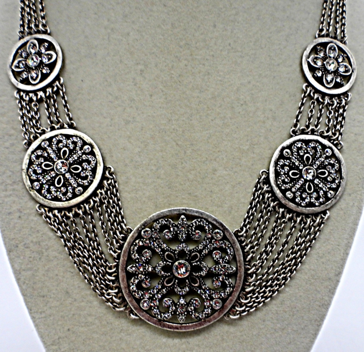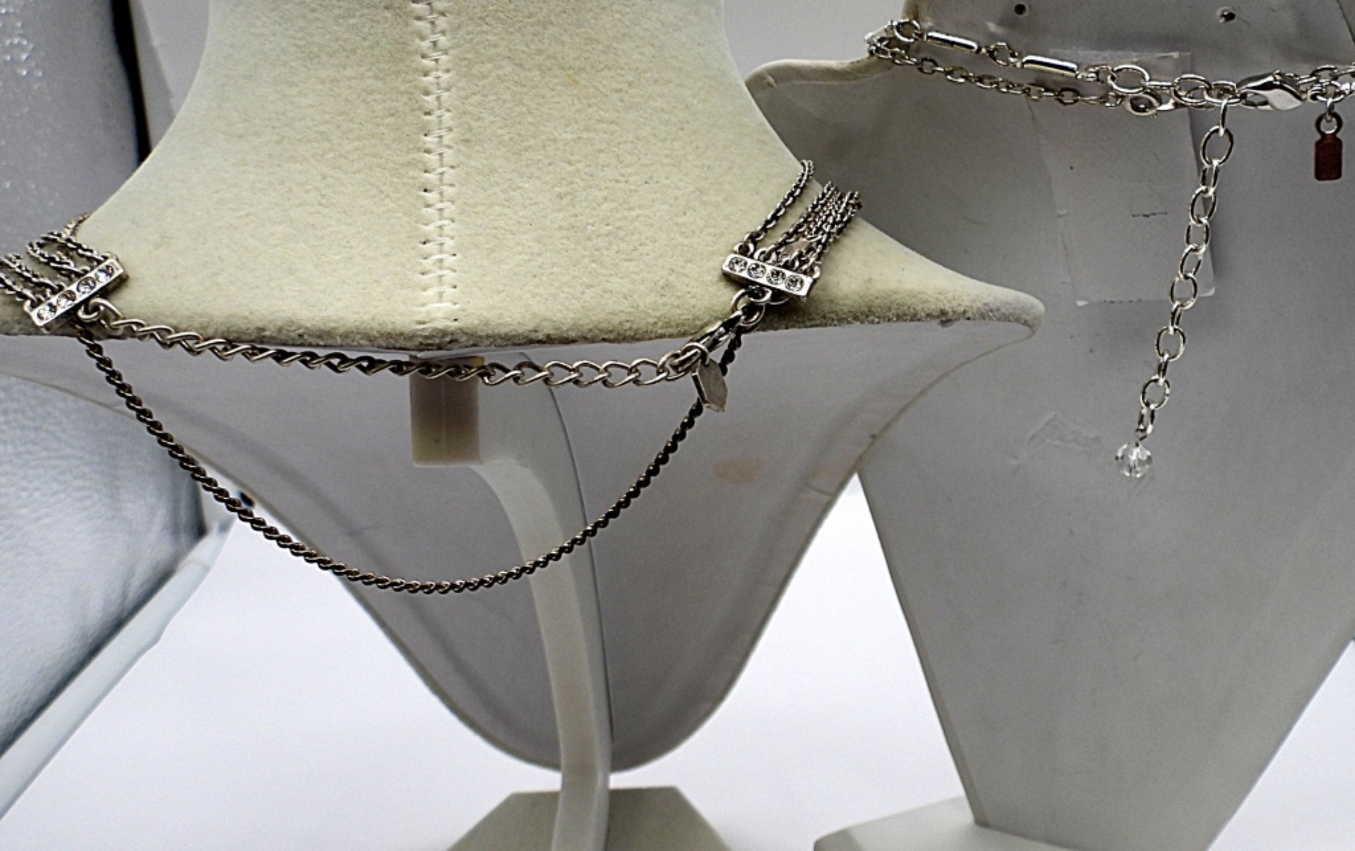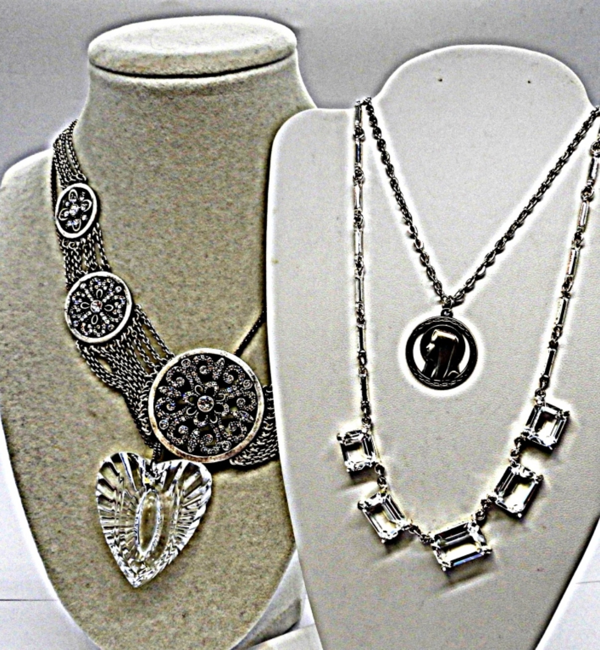 (1) 18″ TOUCHSTONE CRYSTAL (1) 18″ MARY/CATHOLIC DOUBLE SIDED (1) 23″WATERFORD CRYSTAL VINTAGE NECKLACE (1) 19 ” SWAROVSKI CRYSTAL