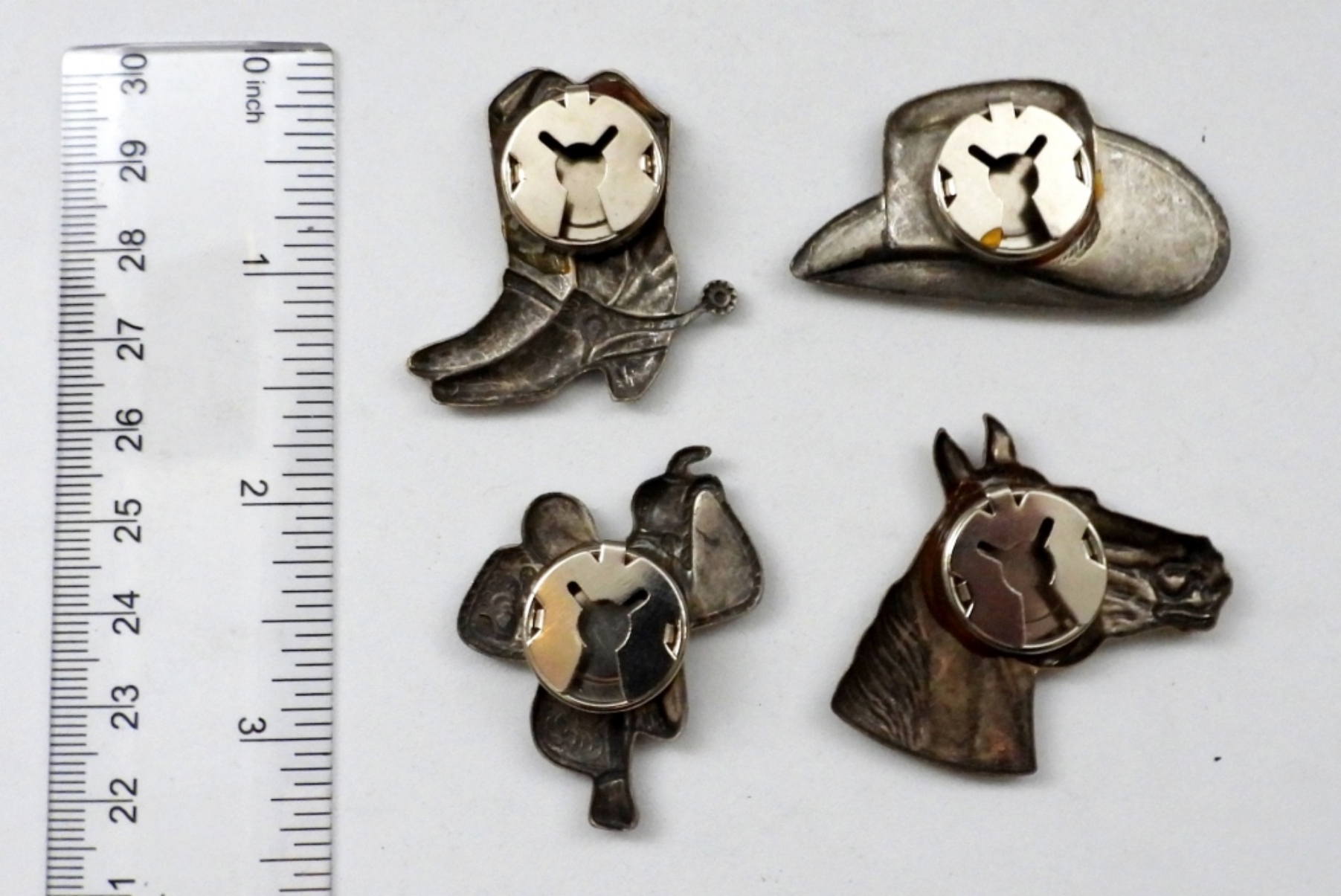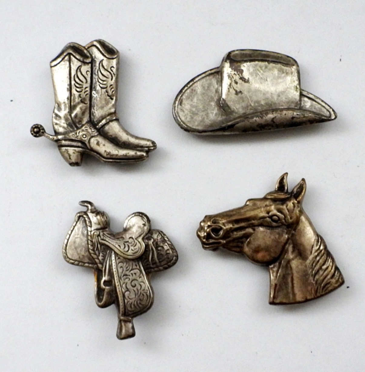 VINTAGE SILVER TONE BUTTON COVERS COWBOY BOOTS, HAT, SADDLE, & HORSE