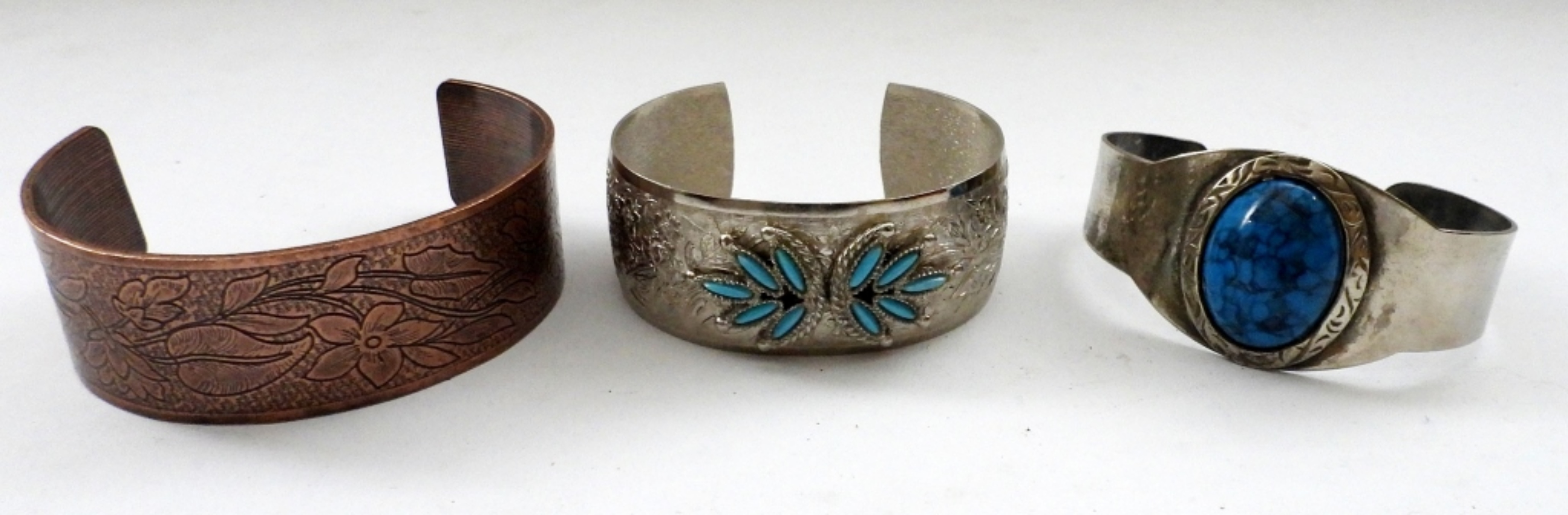 TURQUOISE & NATURAL SMOOTH STONES, SILVER & BRONZE TONE CUFF BRACELETS