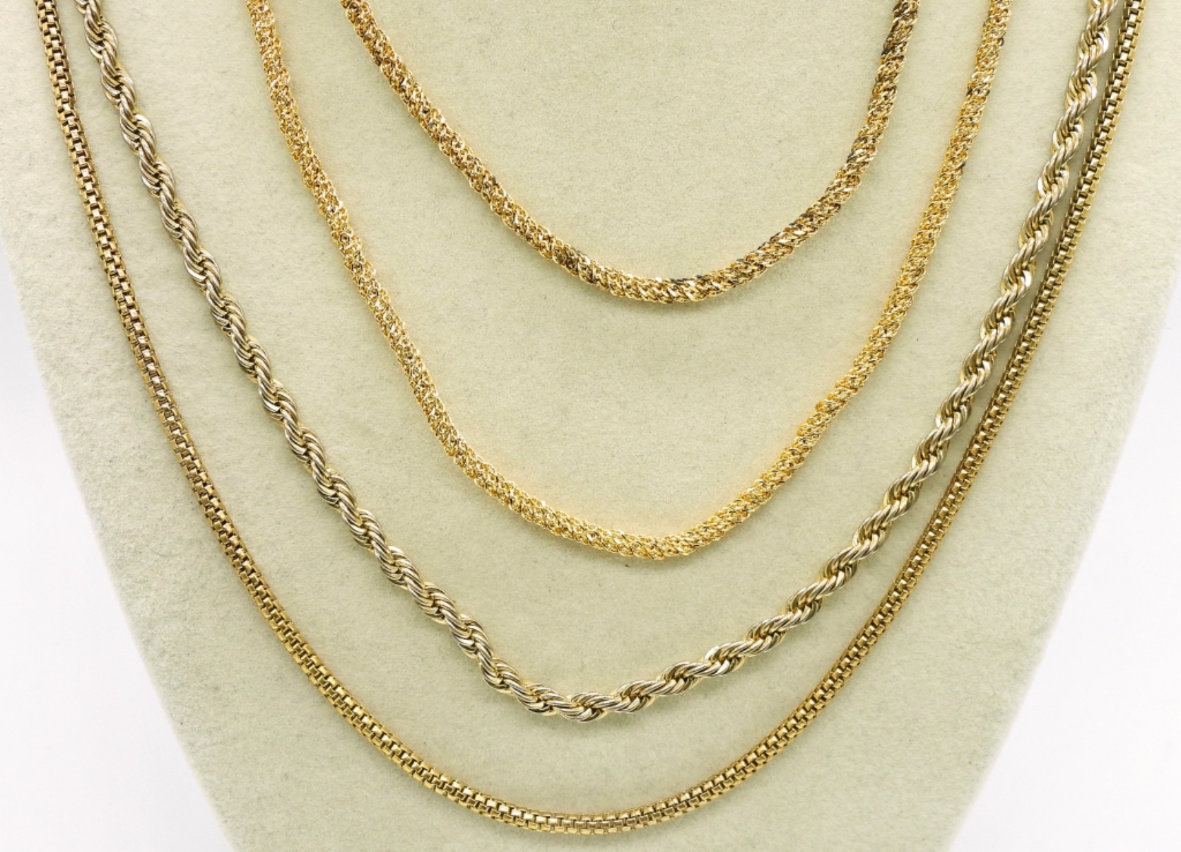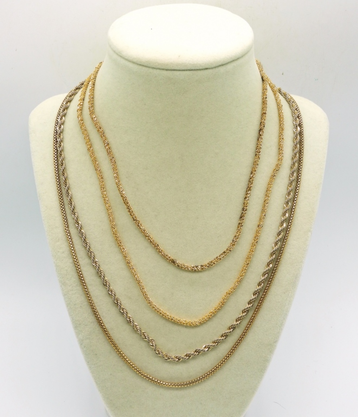 4 GOLD TONE CHAINS. 17.5″ x2, 19.5″, 25″.