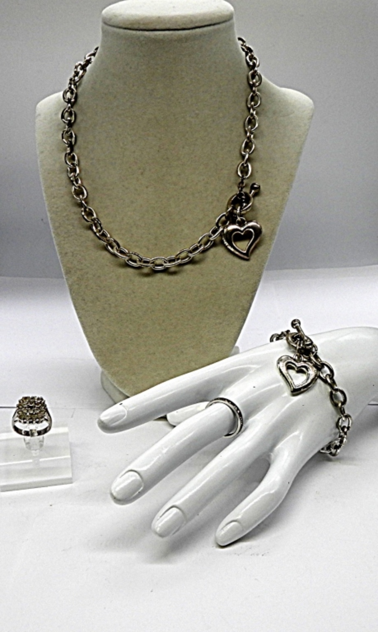 MATCHING 20″ BRACLET AND NECKLACE SET SILVER TONE COCKTAIL RING SIZE 7 SILVER TONE RING SIZE 7 WITH GEMSTONES