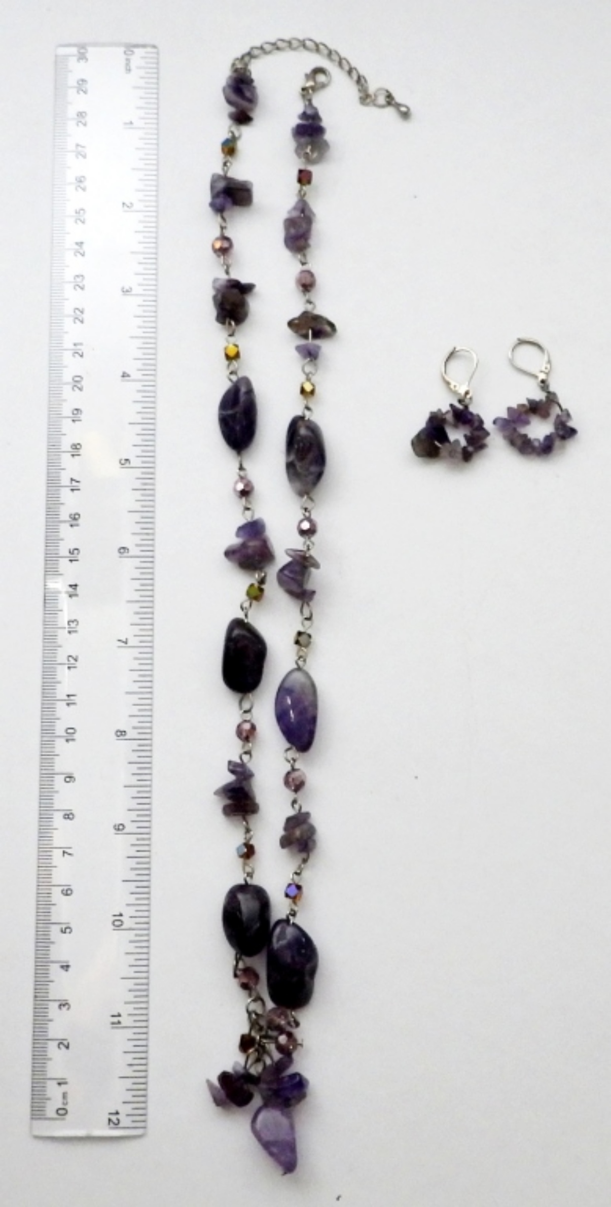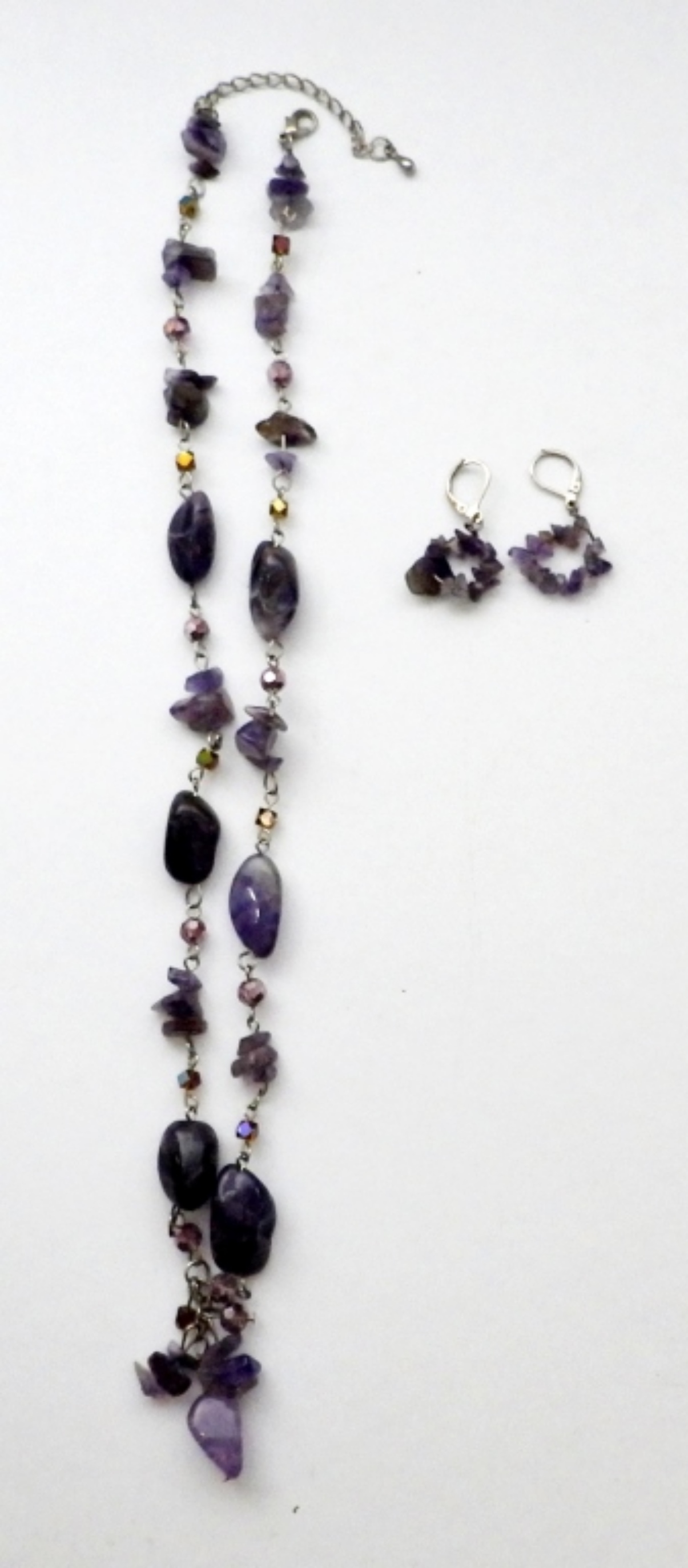 26″ PURPLE NATURAL STONE NECKLACE & MATCHING PIERCED EARRINGS