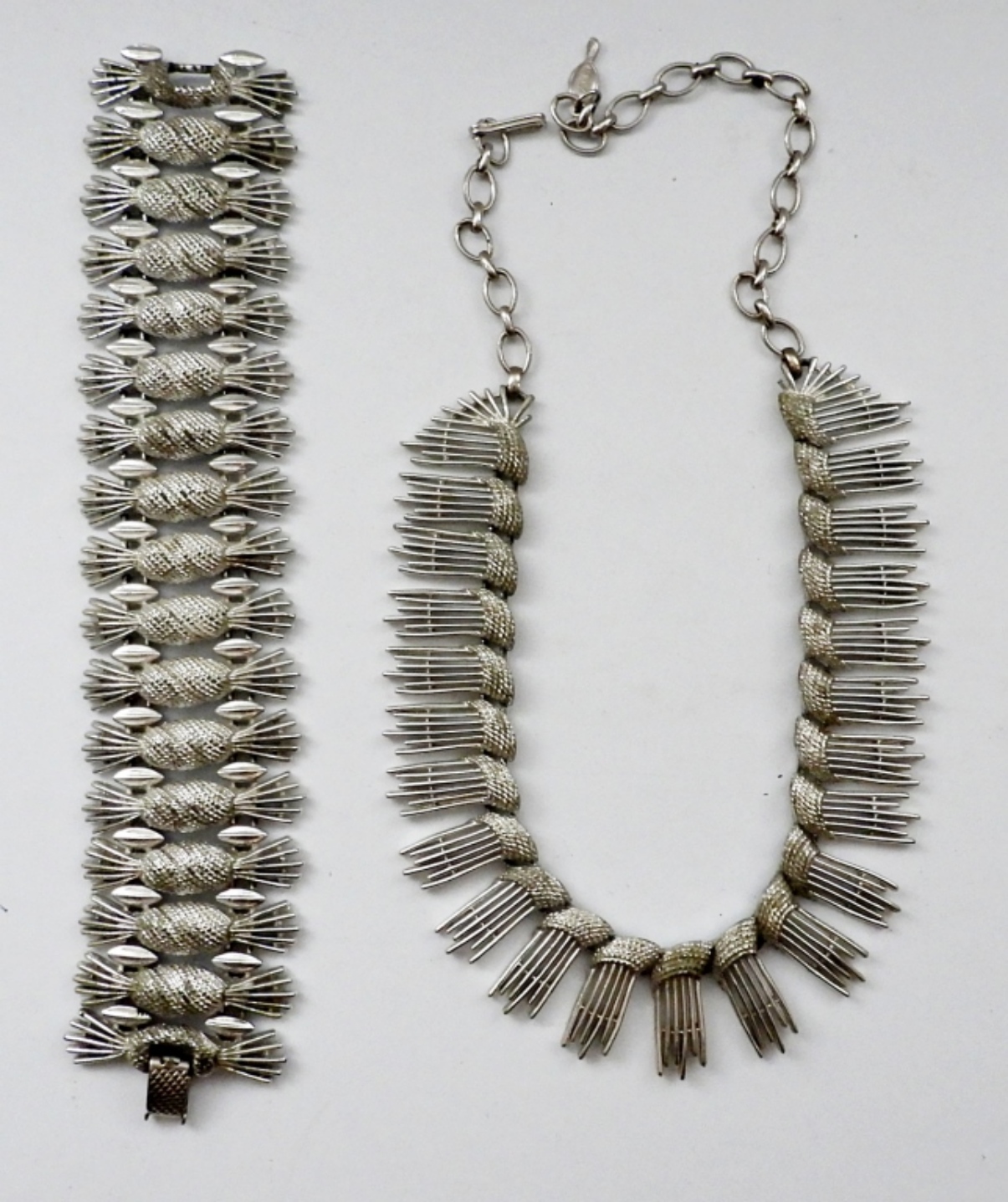 MATCHING SILVER TONE 17″ CHOKER & 8″ BRACELET WITH UNIQUE WIDE DESIGN