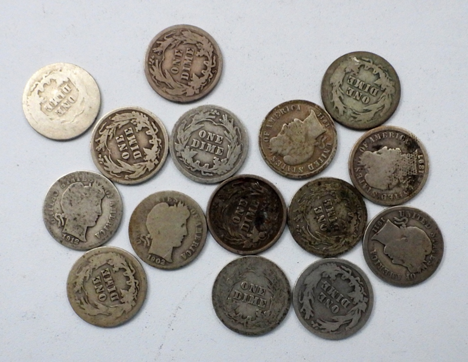 BARBER DIME LOT of 15 COINS