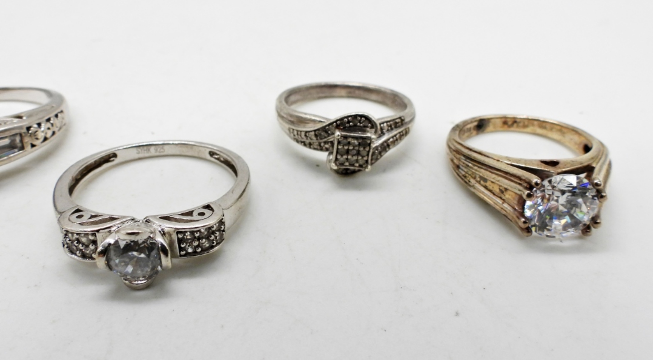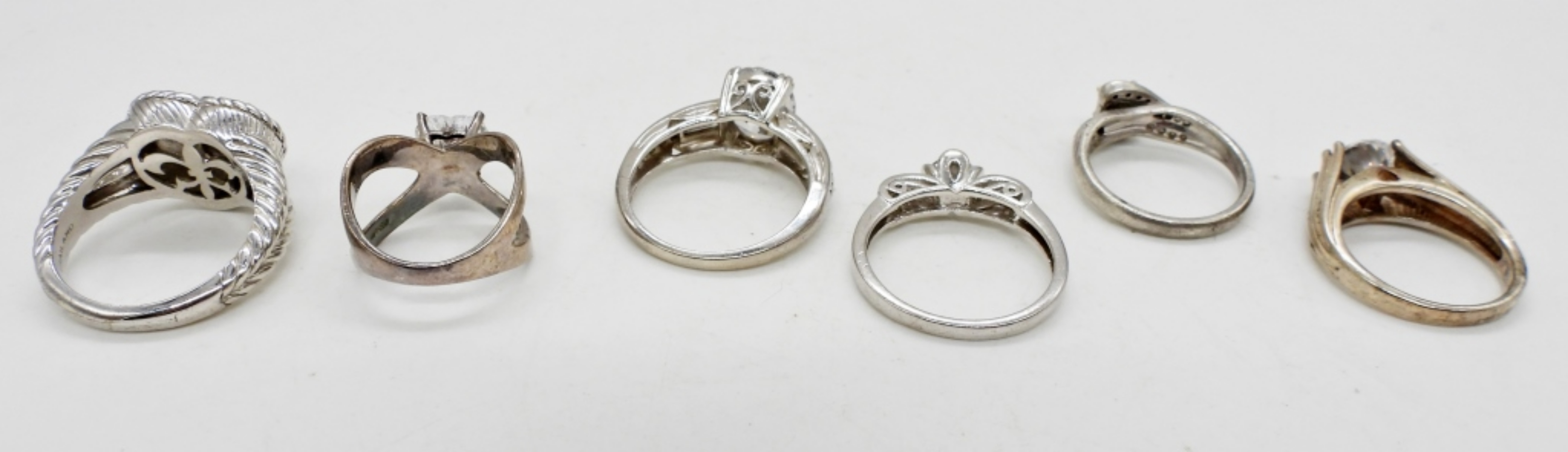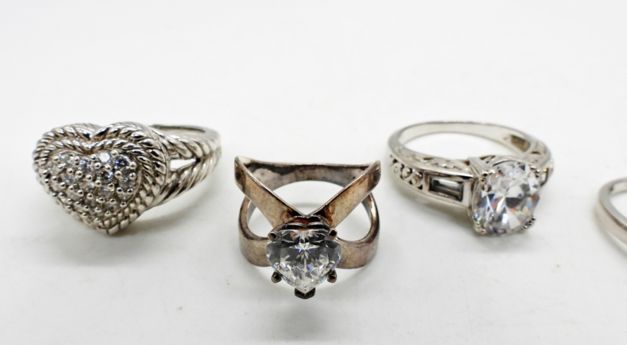 JUDITH RIPKA HEART SHAPED STERLING RING, SIZE 9. OTHER BRIDAL STYLE RINGS ARE SIZED 6, 7, 9, 10. 20 DWT