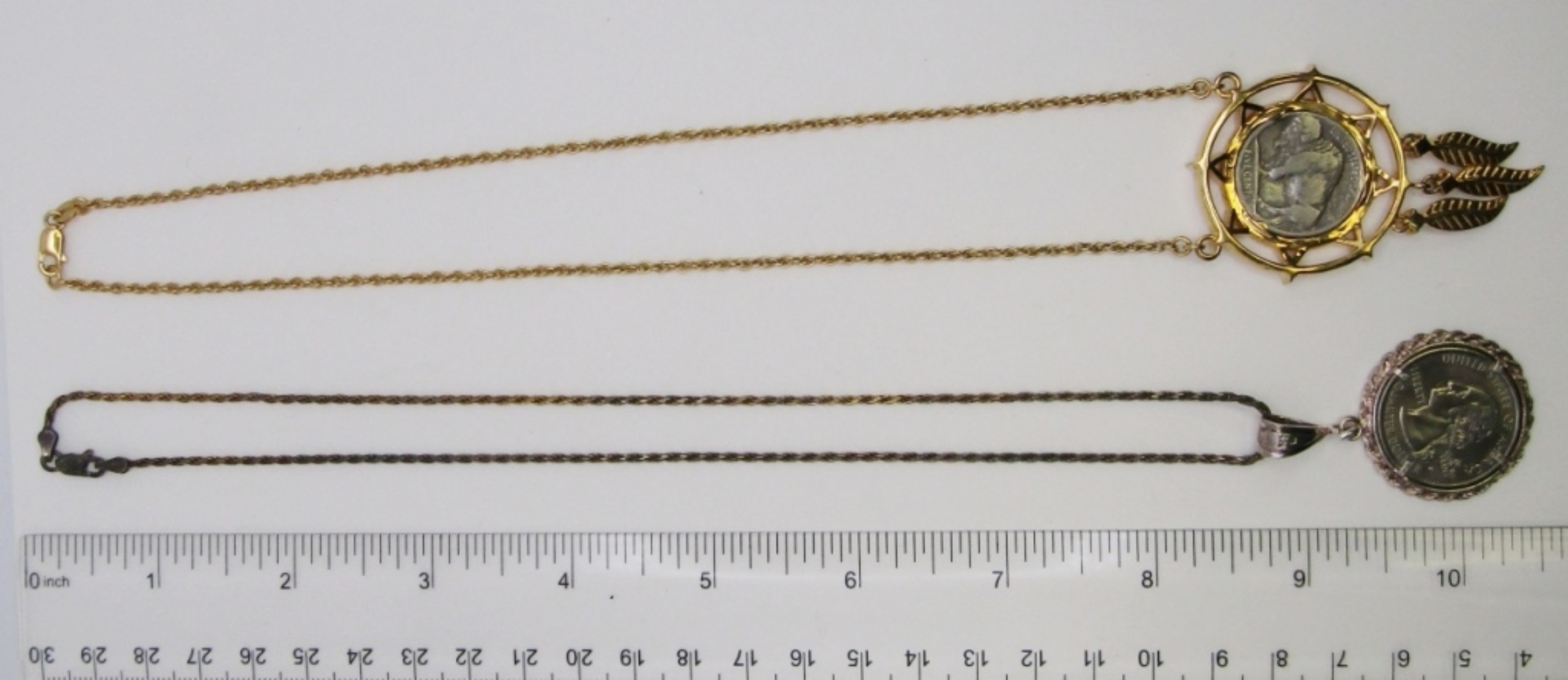 24 DWT. 1926 BUFFALO NICKEL IN 16″ NECKLACE STAMPED BGE 925 & 1999-P GEORGIA STATE QUARTER IN 17″ NECKLACE STAMPED 925