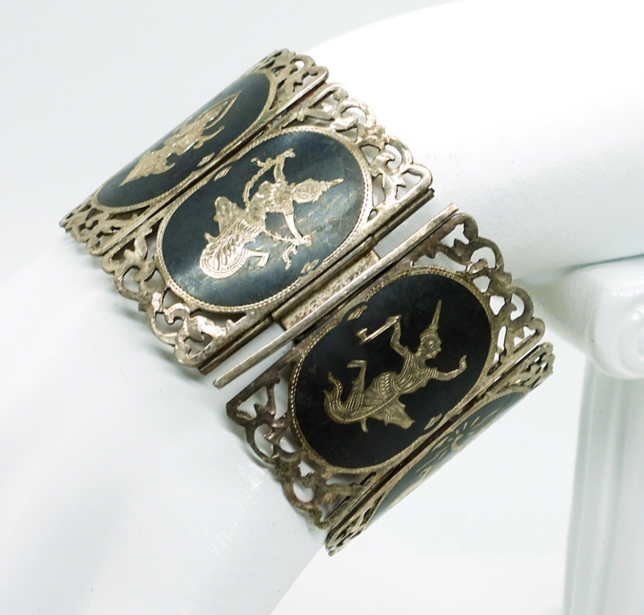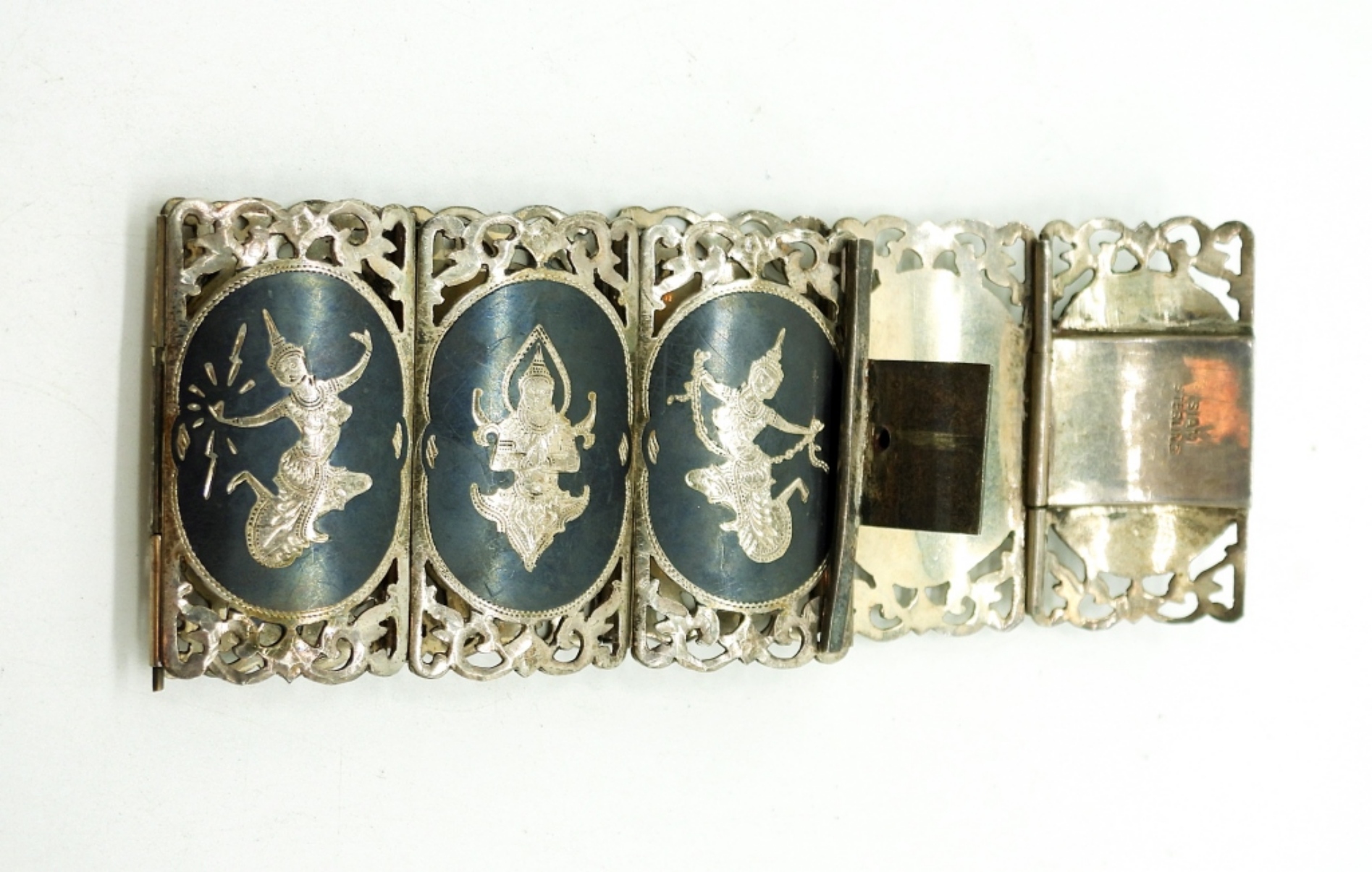 Siam Sterling Bracelet, Black and Silver, 1.5″ Wide, 7″ Long. Clasp works, Bracelet in great shape. (33.8 DWT)