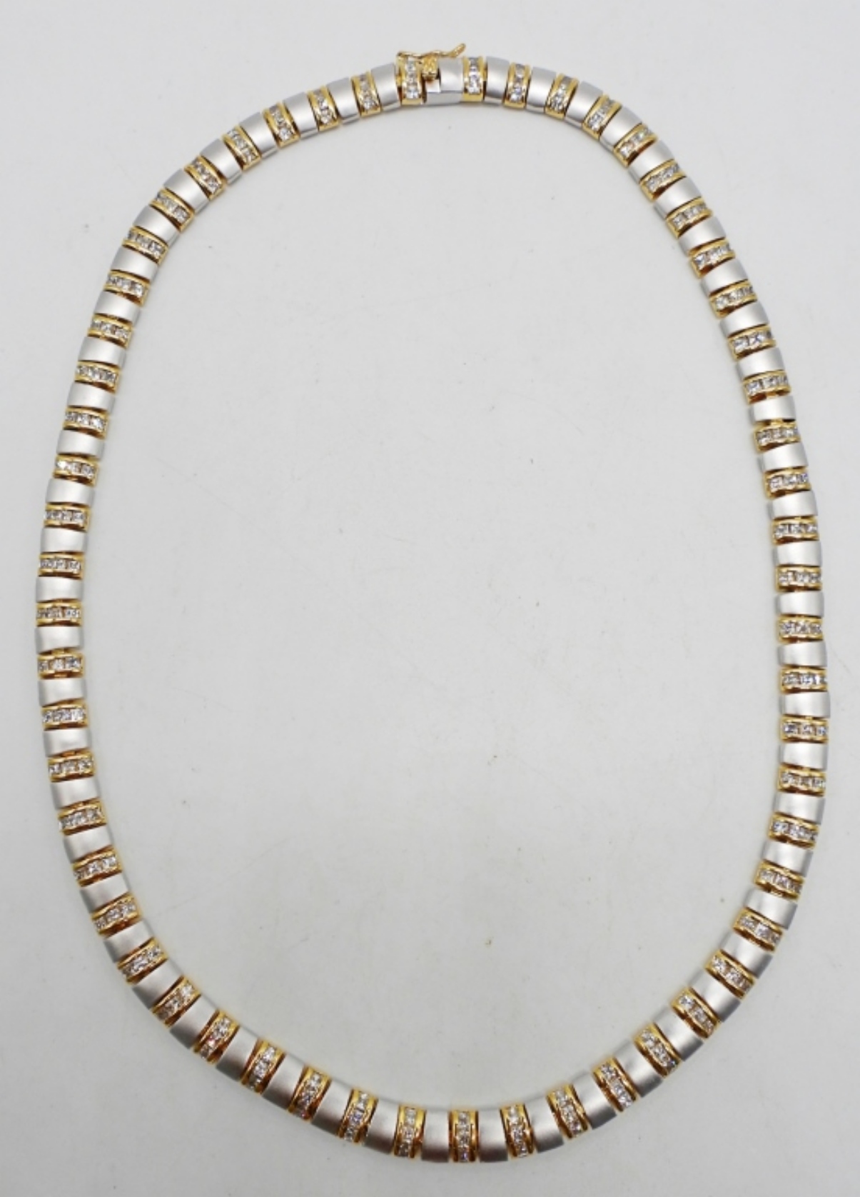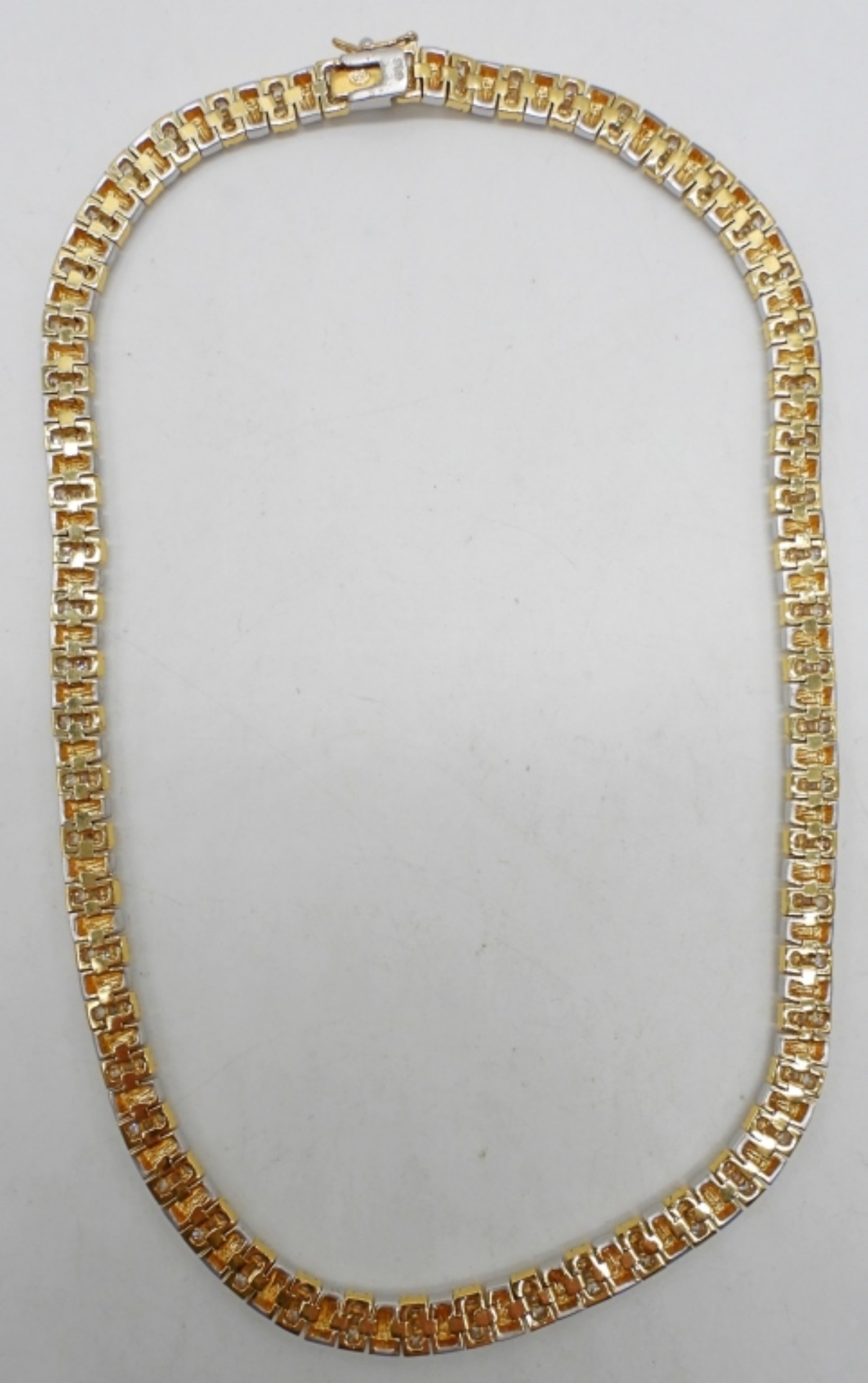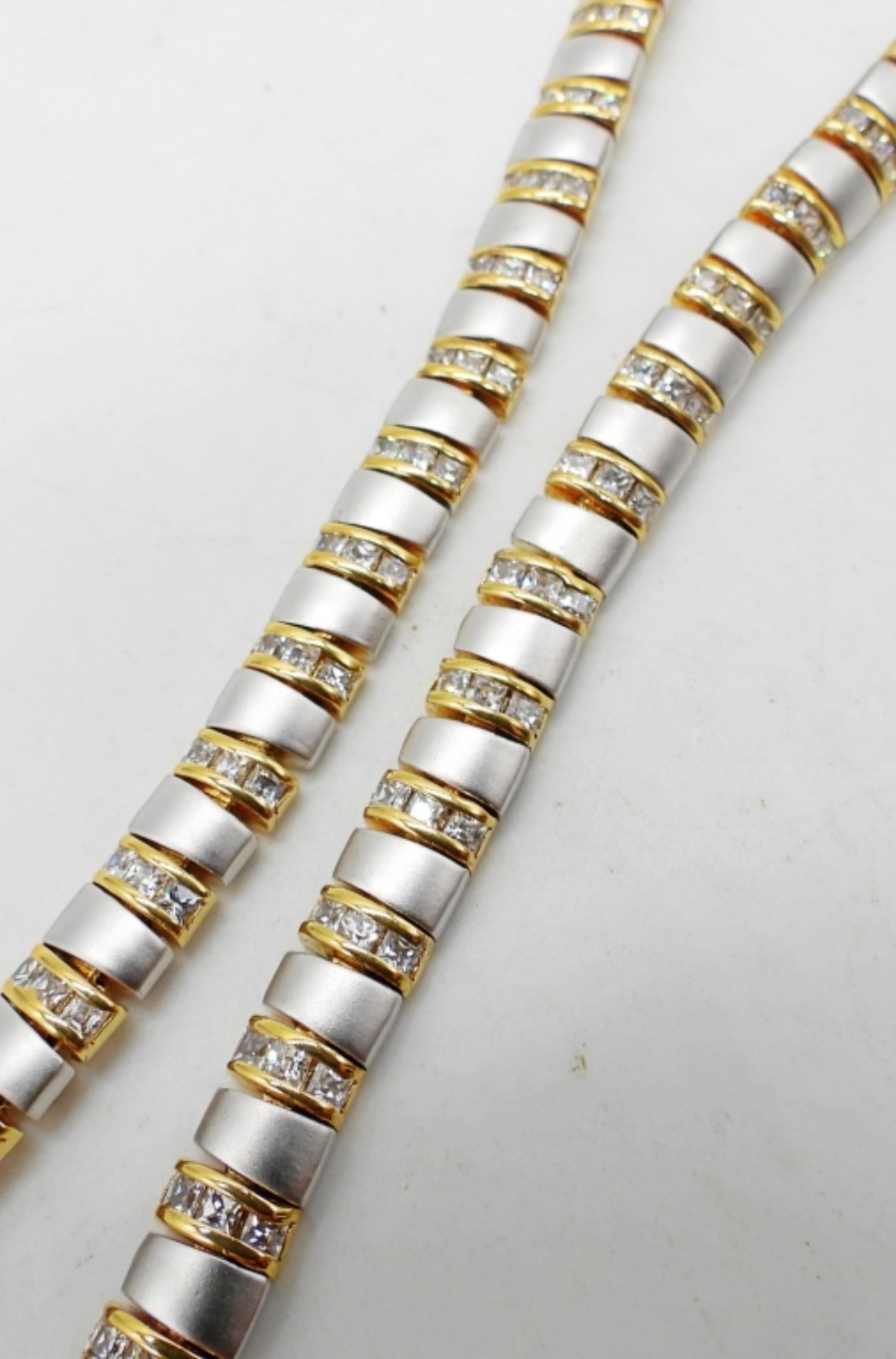 925 Matte Silver & Gold tone with Diamond Colored Gemstones. 33DWT, 17 1/2″ LONG, WITH BOX CLASP, STAMPED 925 & LGA
