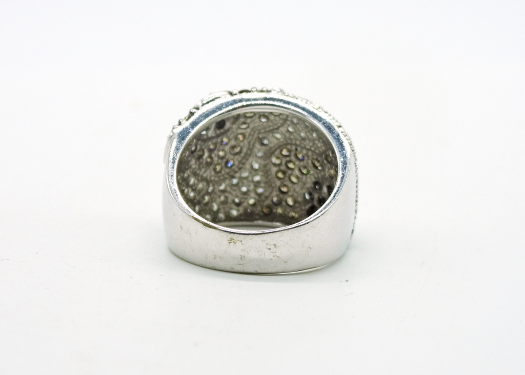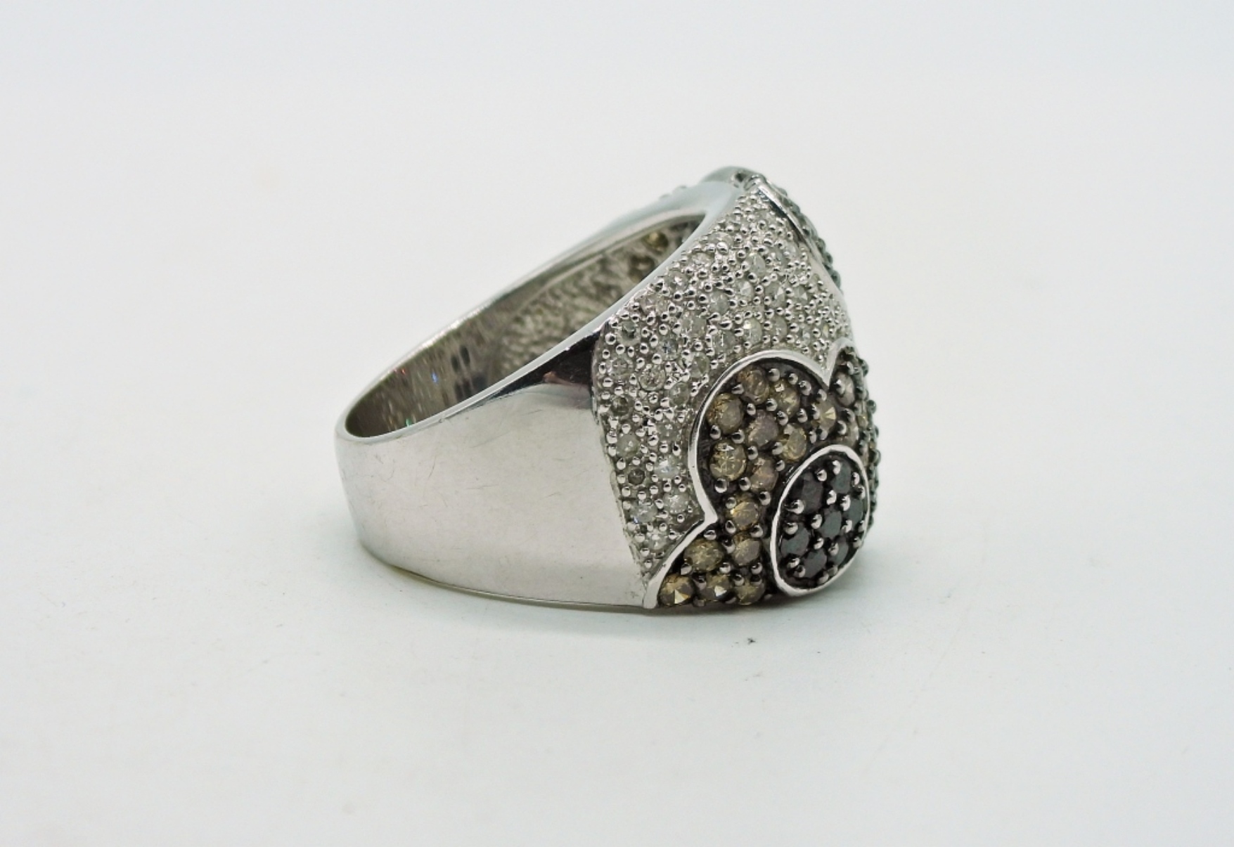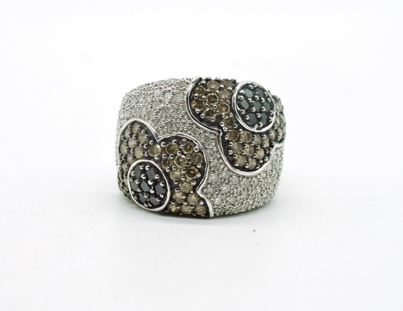 Sparkling flower motif ring size 8 in 10K white gold. White & Champagne Moissanite gemstones (tested Moissanite) (DWT 5.2)