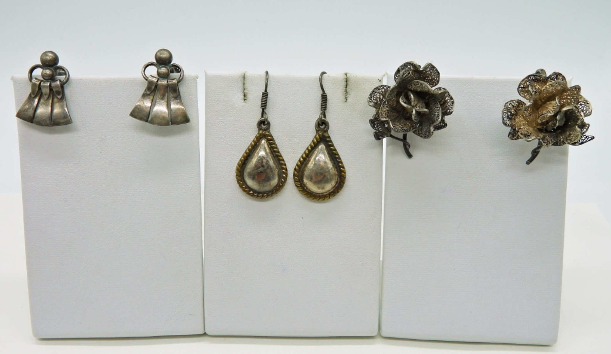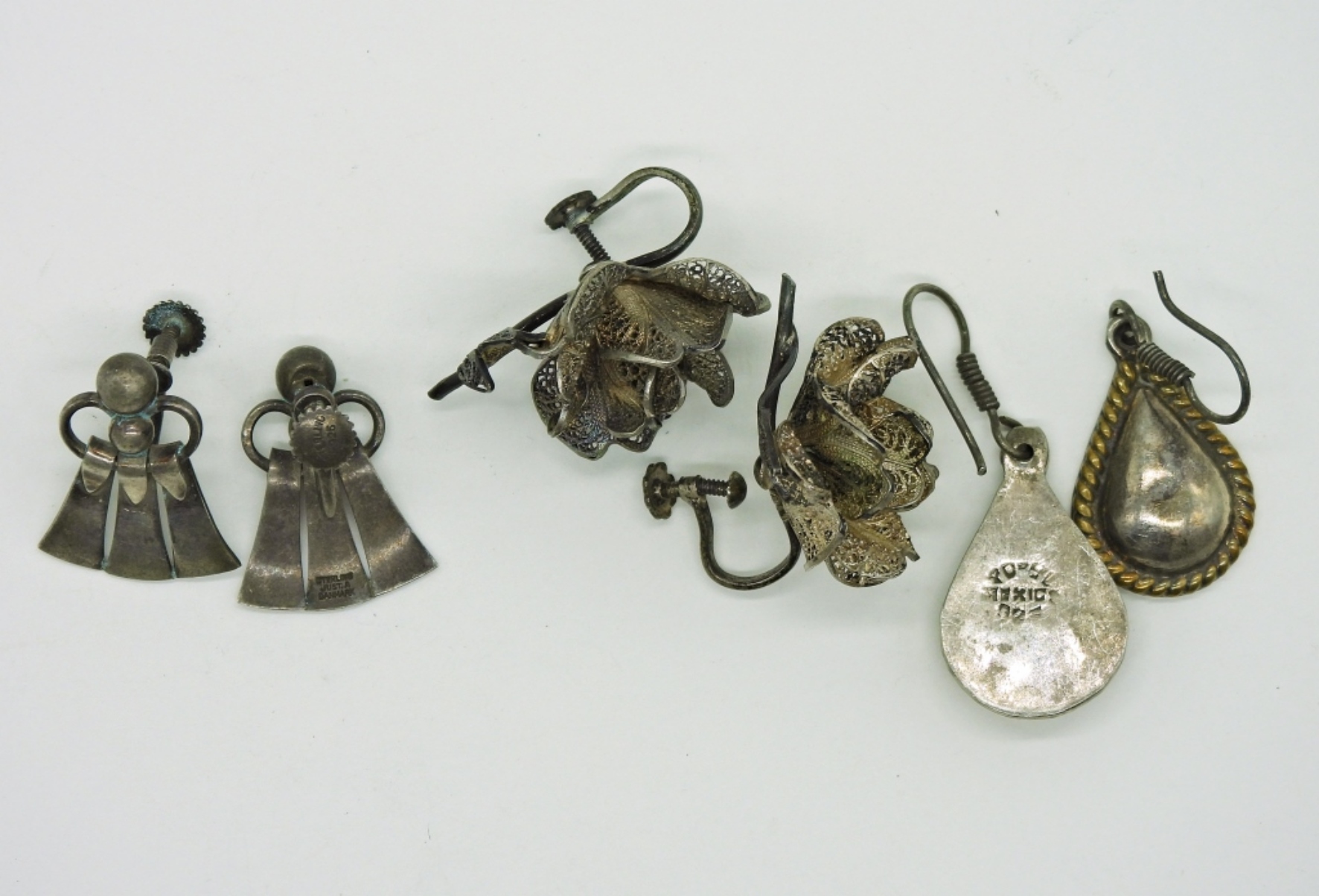 Three Pair of Sterling, Vintage Earrings. Marked “Sterling-Just A Danmark”, “Mexico 925”, “925”. 20.5 DWT