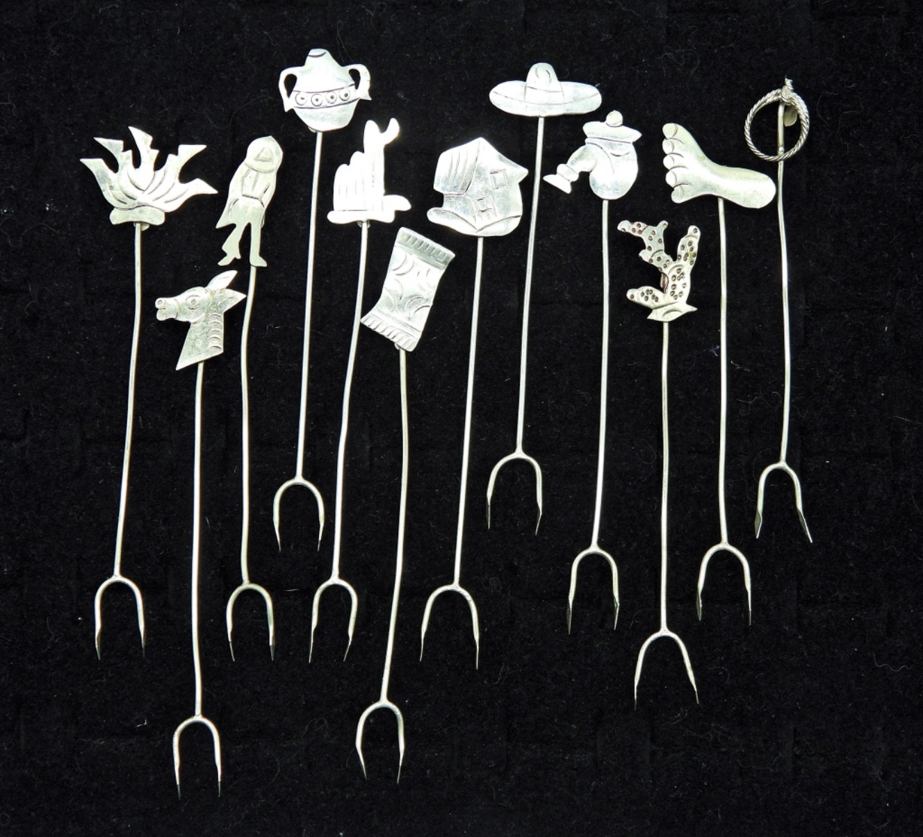 Twelve Taxco Sterling 925 Hor D’oeuvres Forks. 3.5″ long. 13.9 DWT
