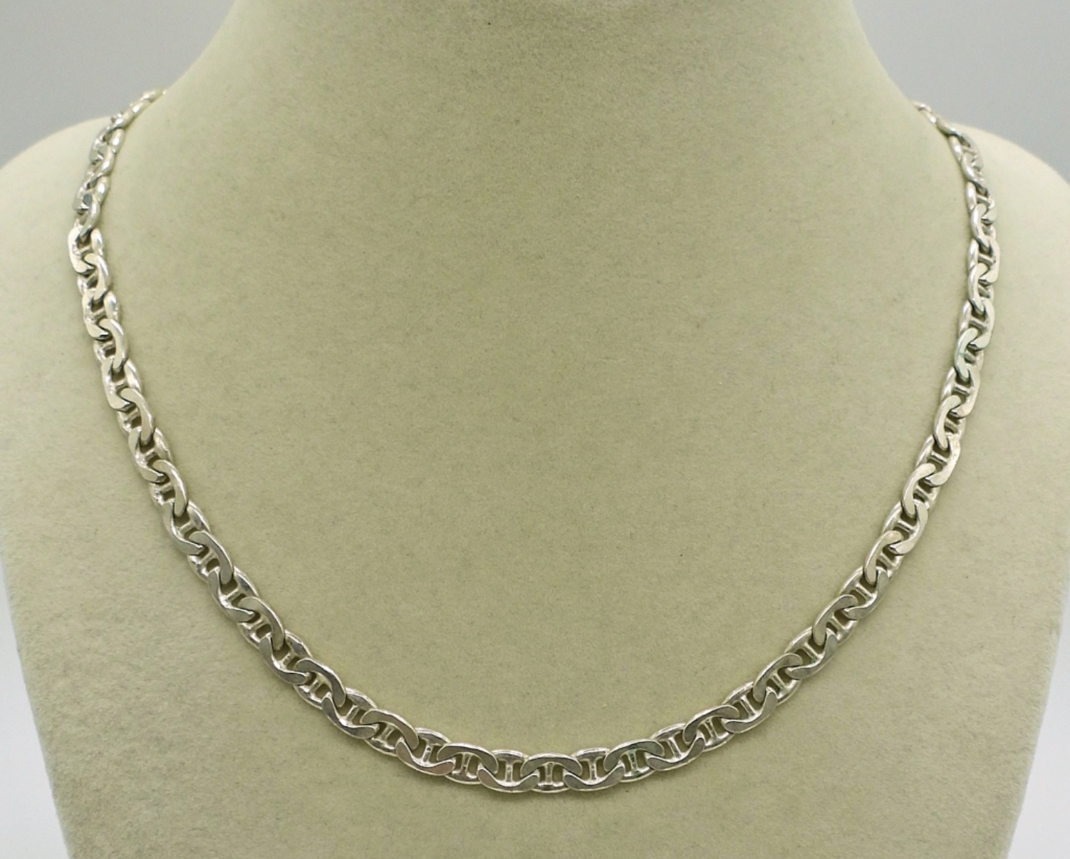 Very Nice Sterling Flat Mariner Link Chain Necklace, 24″. 23 DWT