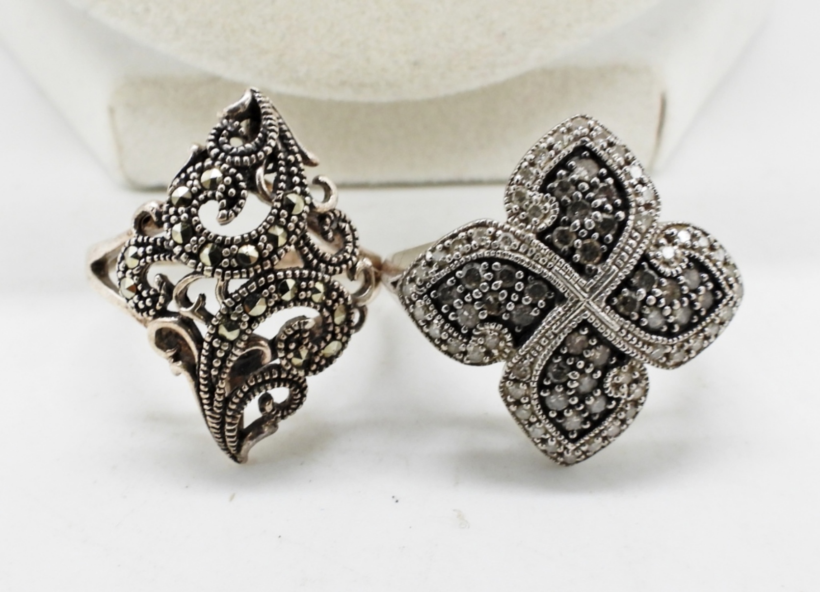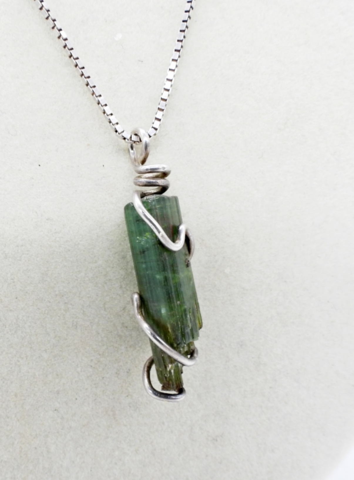 2 STERLING, MARCASITE RING SIZES 6.5 & 7. GREEN TOURMALINE GEMSTONE ON A 30″ STERLING CHAIN , WRAPPED IN STERLING WIRE. 10.1 DWT