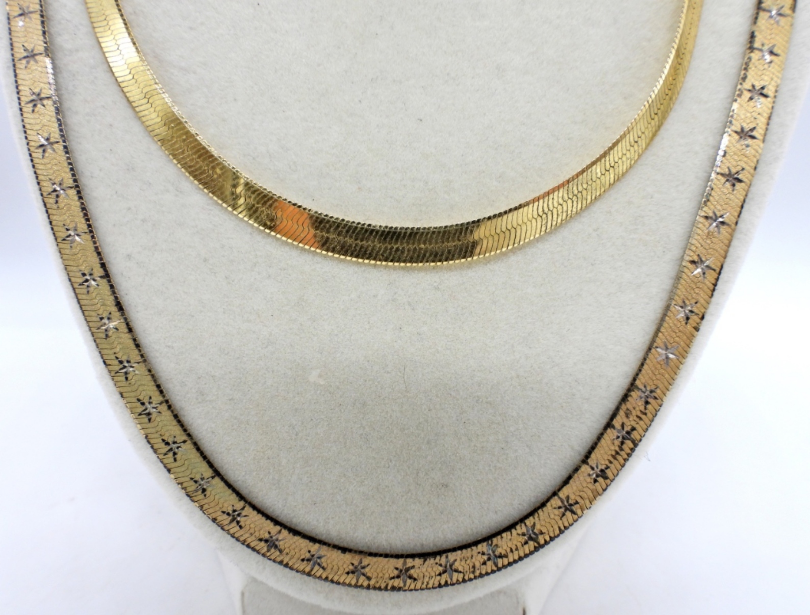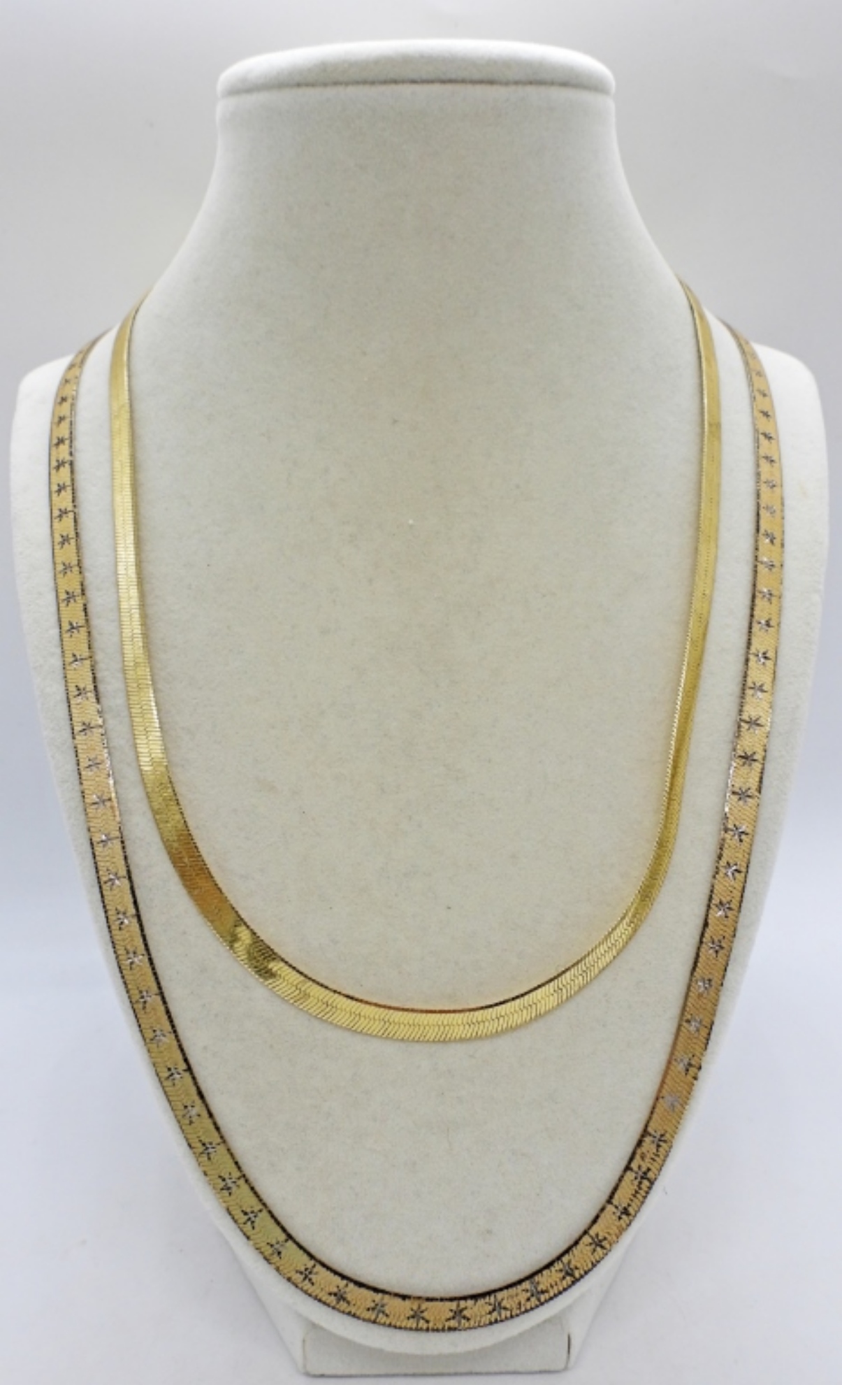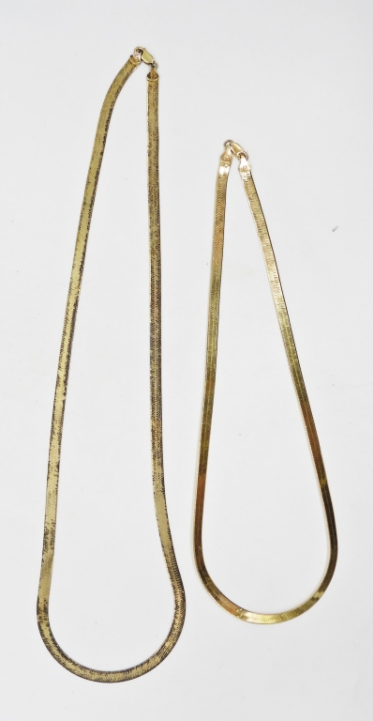 2 GOLD TONE HERRINGBONE CHAINS, STERLING SILVER. 20″ & 26″. 22.5 DWT