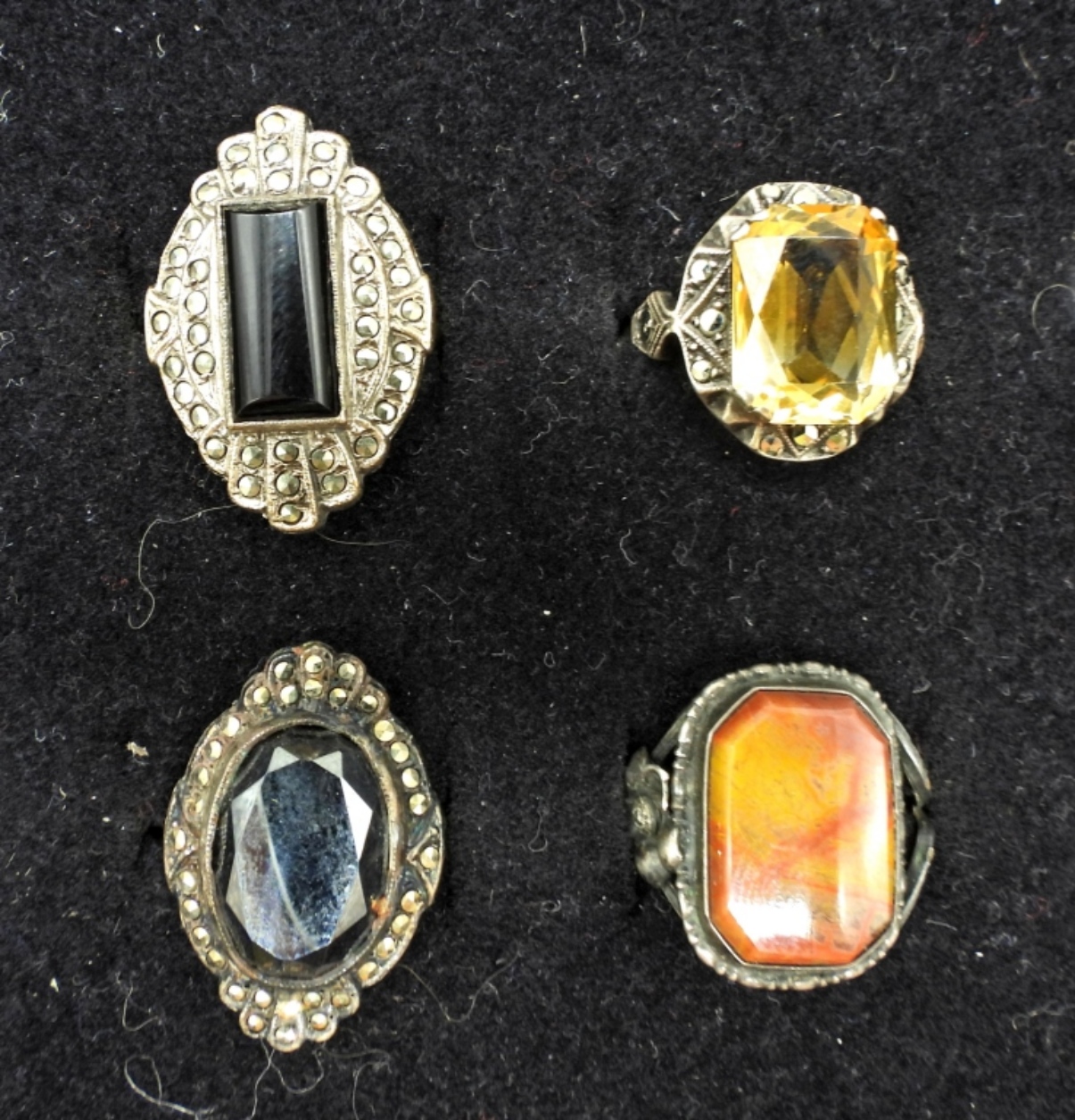 4 PRETTY GEMSTONE RINGS, STERLING SILVER. SIZES 3.5, 4, 5, 6.5. 10.1 DWT