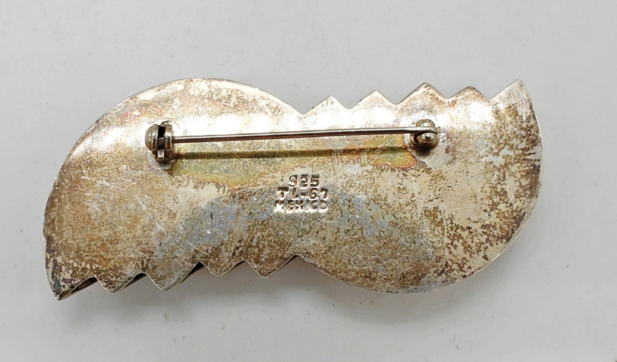 VINTAGE STERLING BROOCH 2.5″, MARKED “MEXICO tl-67 925”. 17.8 DWT